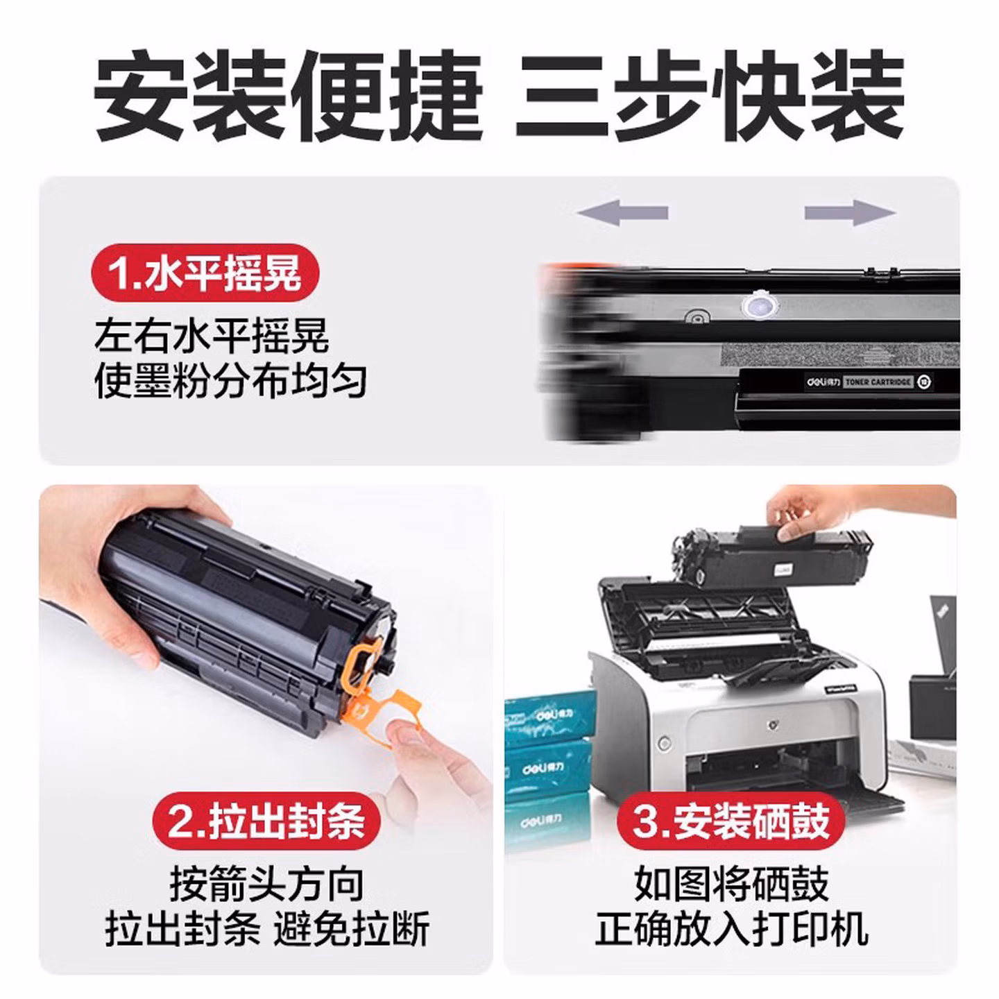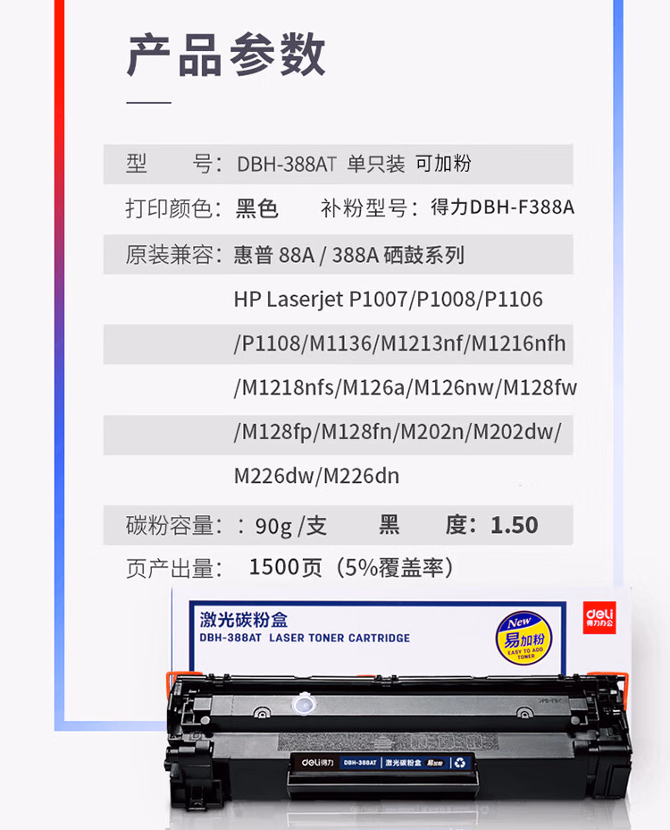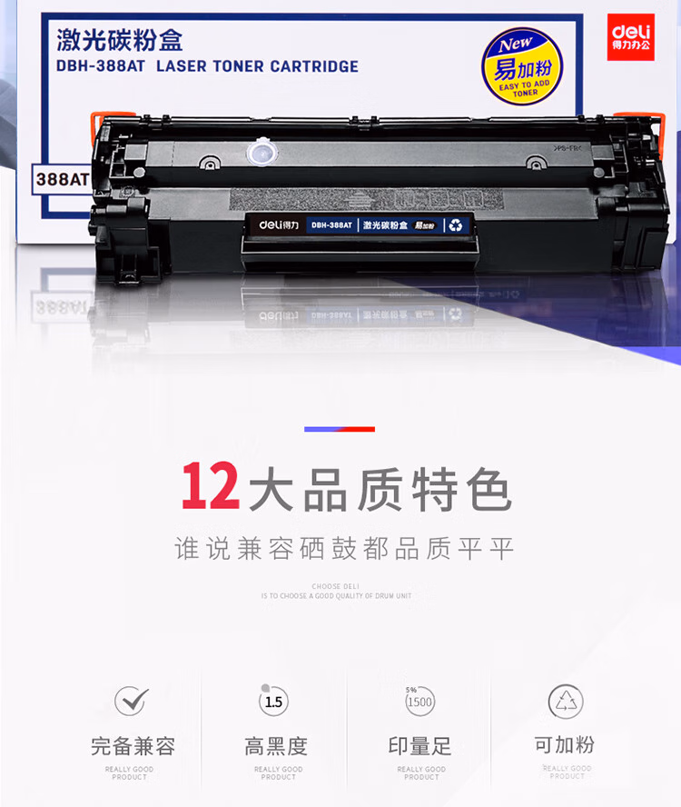 > 得力(deli)388A硒鼓 88A硒鼓适用于惠普打印机HP P1008 P1106 P1108 M1136 M126a M126nw M128fn硒鼓 大容量1支装