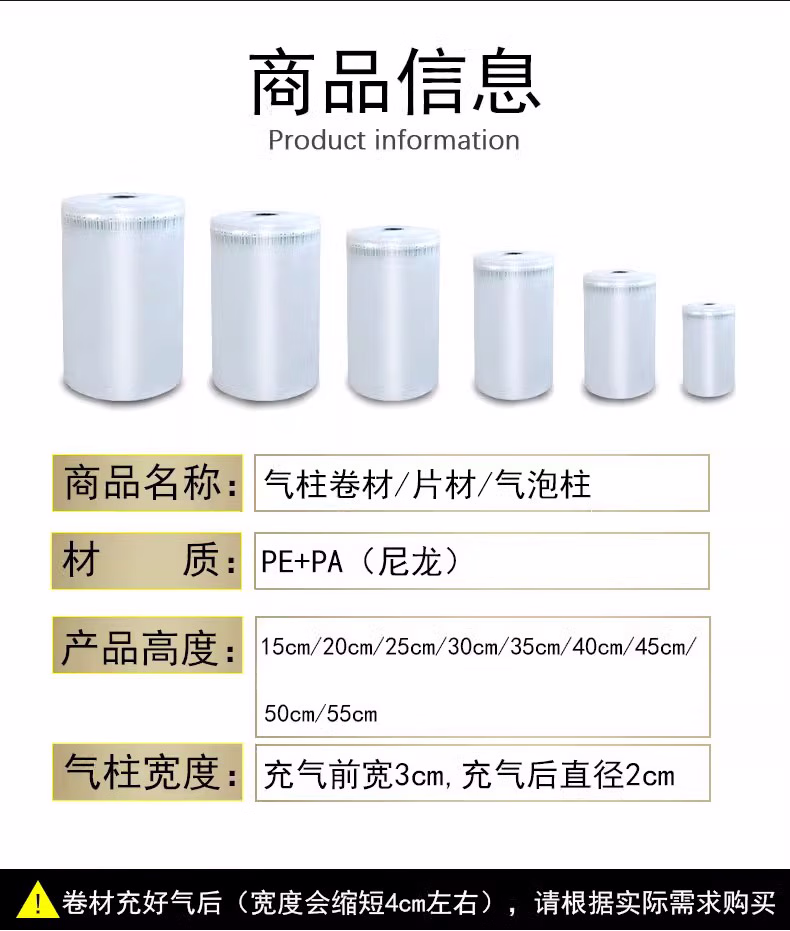鸣固 气柱袋卷材 防摔抗震缓冲充气袋气泡柱气柱卷袋充气柱卷膜气囊 标准款 30cm*长300m CD380131