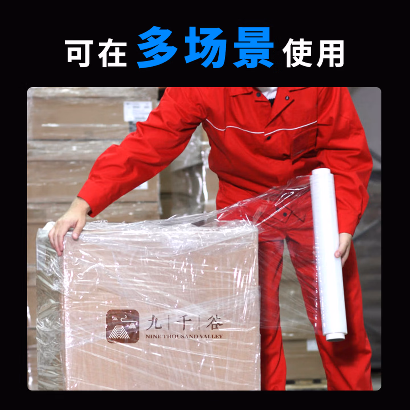 > 九千谷 缠绕膜50cm*110m膜净重1kg*1卷 PE工业保鲜膜搬家打包膜包装膜宽塑料保护薄膜拉伸膜