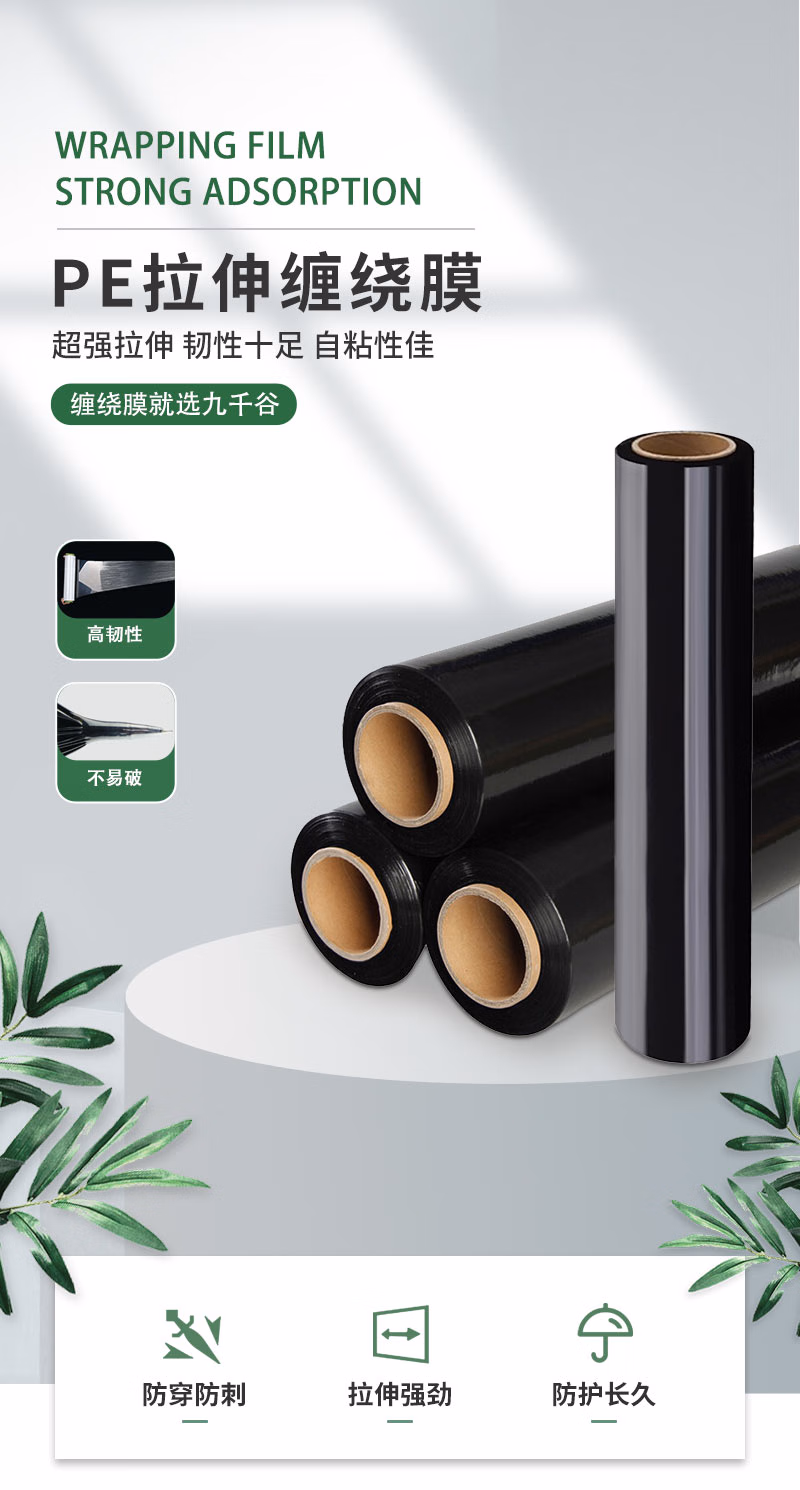 九千谷 缠绕膜50cm*110m膜净重1kg*1卷 PE工业保鲜膜搬家打包膜包装膜宽塑料保护薄膜拉伸膜