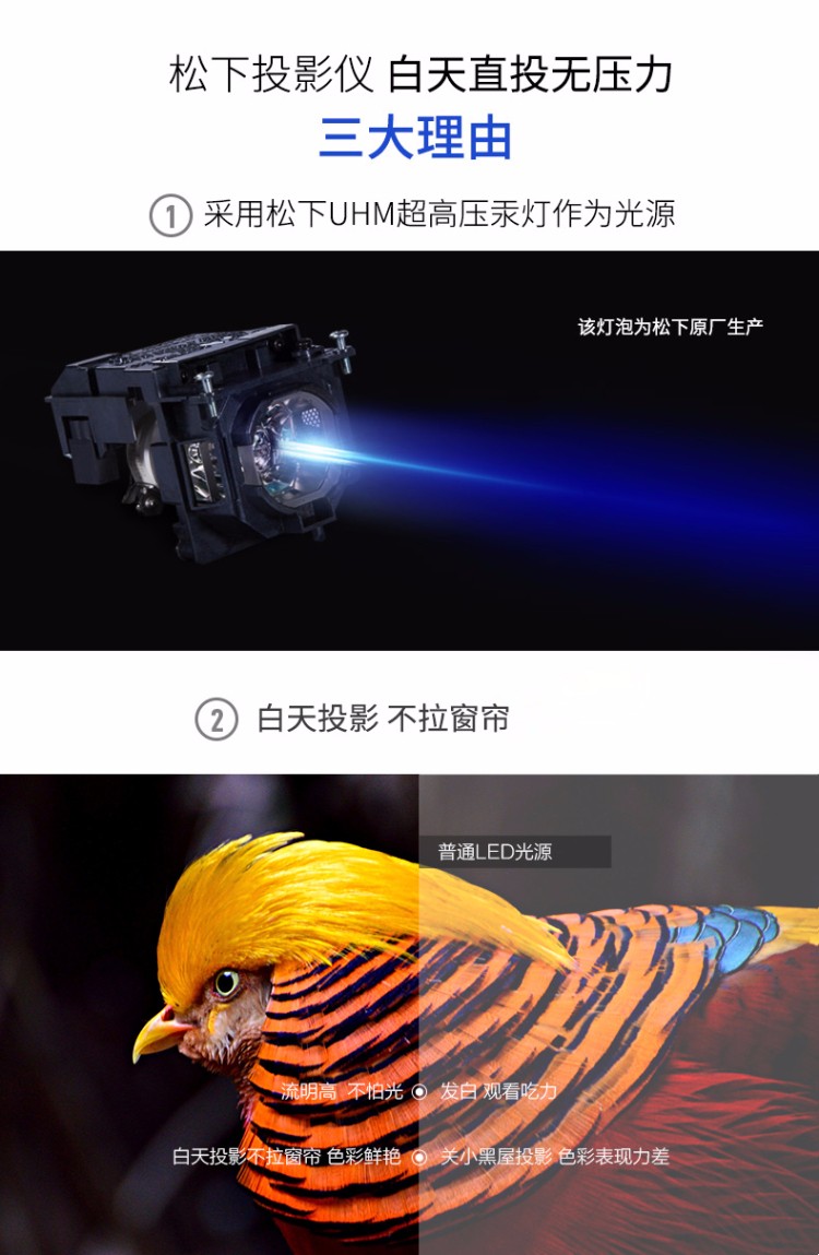 > 松下(Panasonic)高清投影仪办公会议商务教学家用高流明便携投影机 (3700流明 标清XGA)PT-SX3700 标配 高清线套装