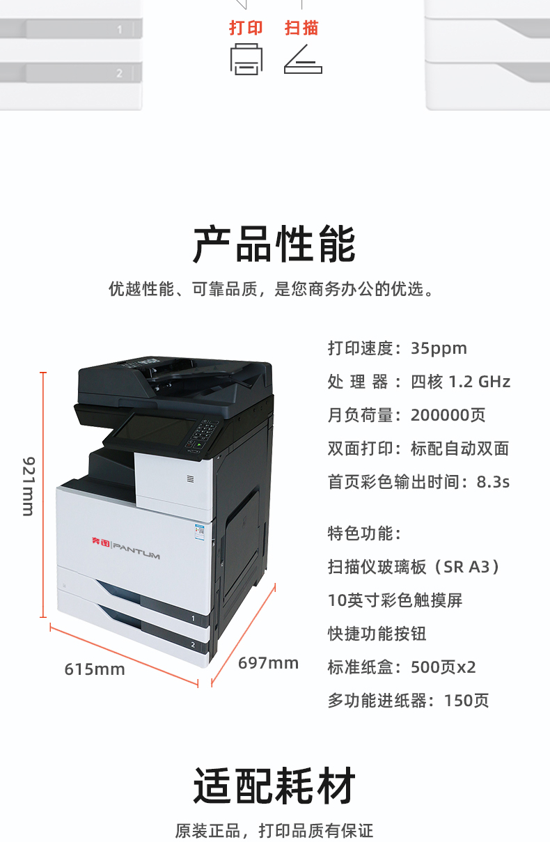 > 奔图(PANTUM)CM8506DN 彩色多功能数码复合机(A3彩色打印、复印、扫描、传真 自动双面 四合一)