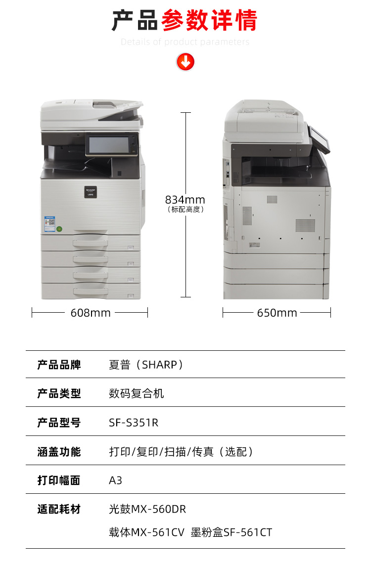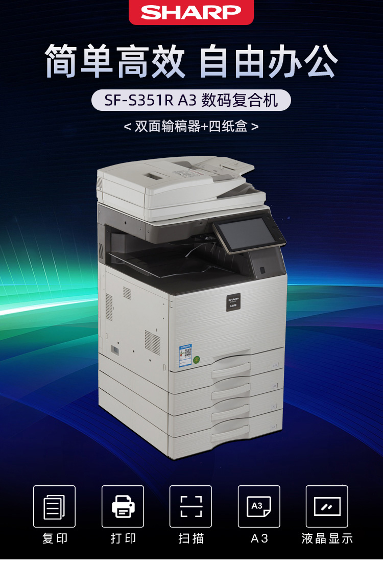> 夏普(SHARP)SF-S351R A3黑白数码复合机(双面自动输稿器 四纸盒)复印机一体机 免费安装售后