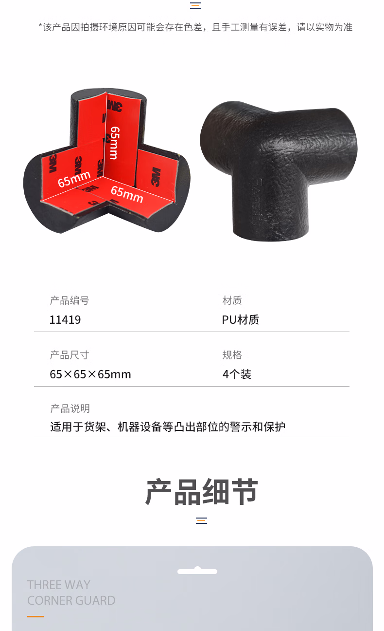 > 安赛瑞 三向护角(4个装)PU防撞护角 桌角护角 防撞包角 3M双面胶 11419