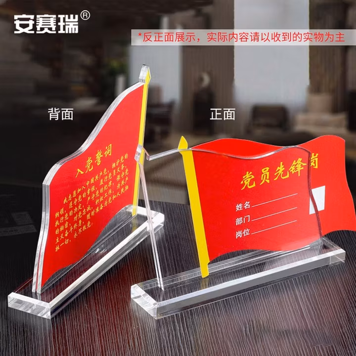 > 安赛瑞 展示牌 亚克力抽拉台卡桌牌 水晶台签党员先锋岗示范岗 185×135mm 8H00016