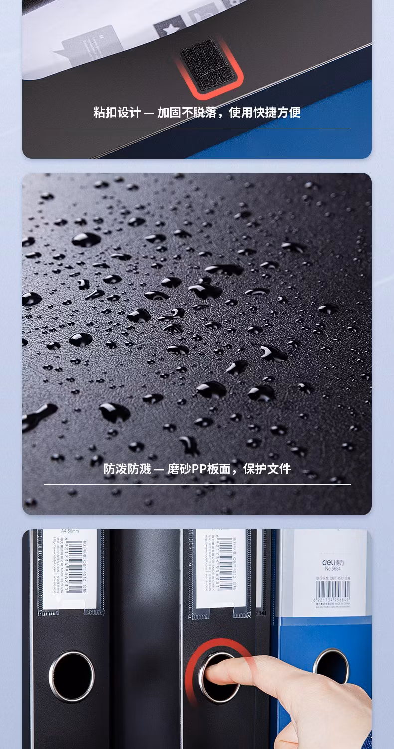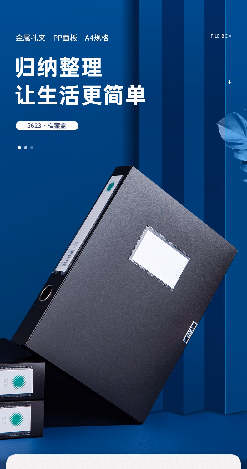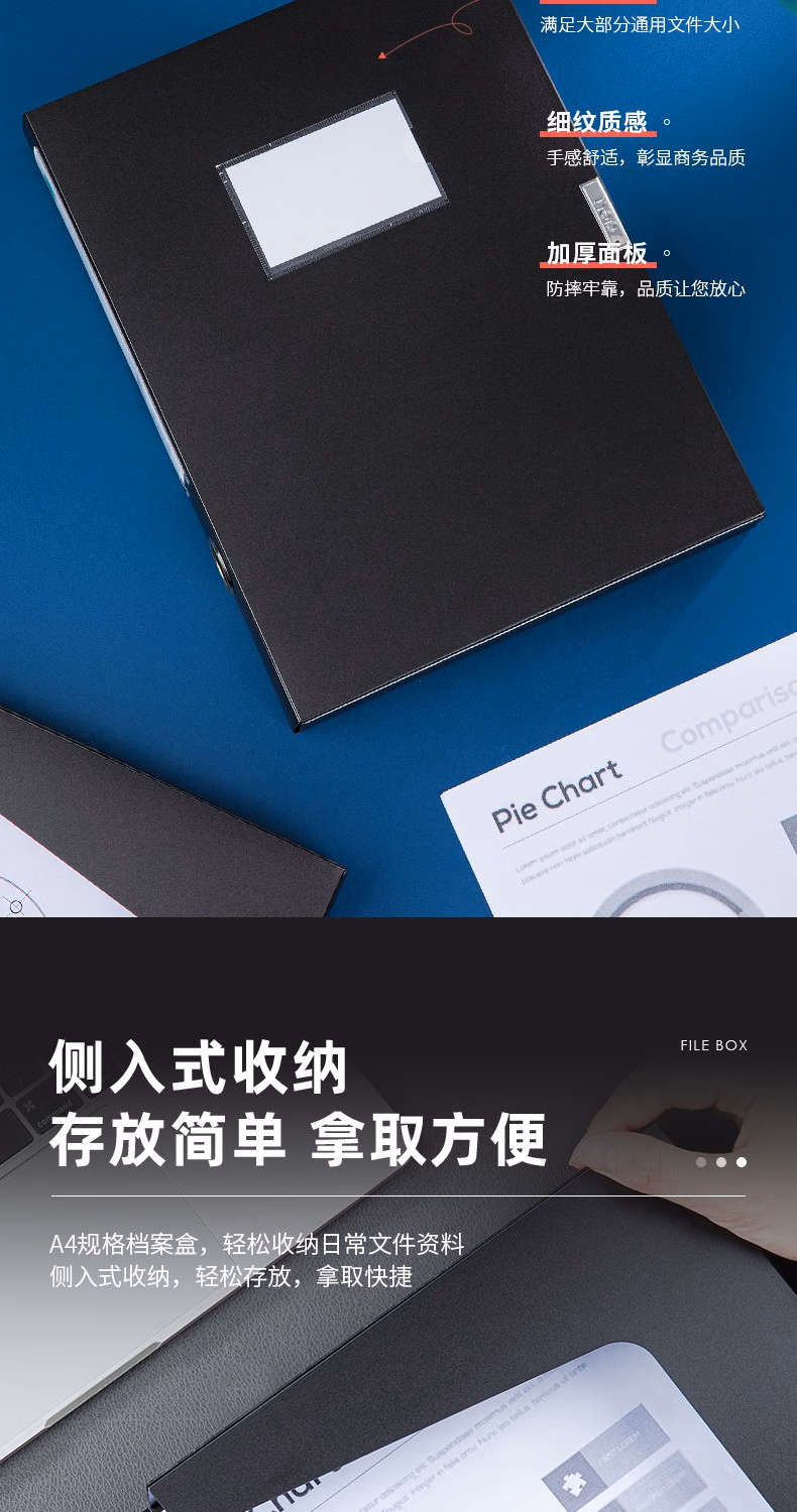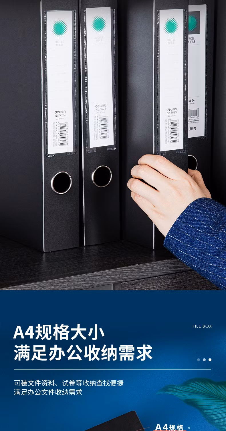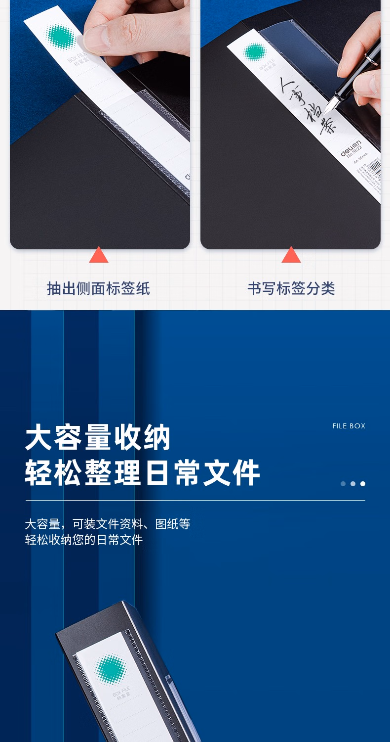 > 得力(deli)A4塑料档案盒 加厚文件盒资料盒 财务凭证收纳盒 办公用品 【5个装】黑色/背宽50mm