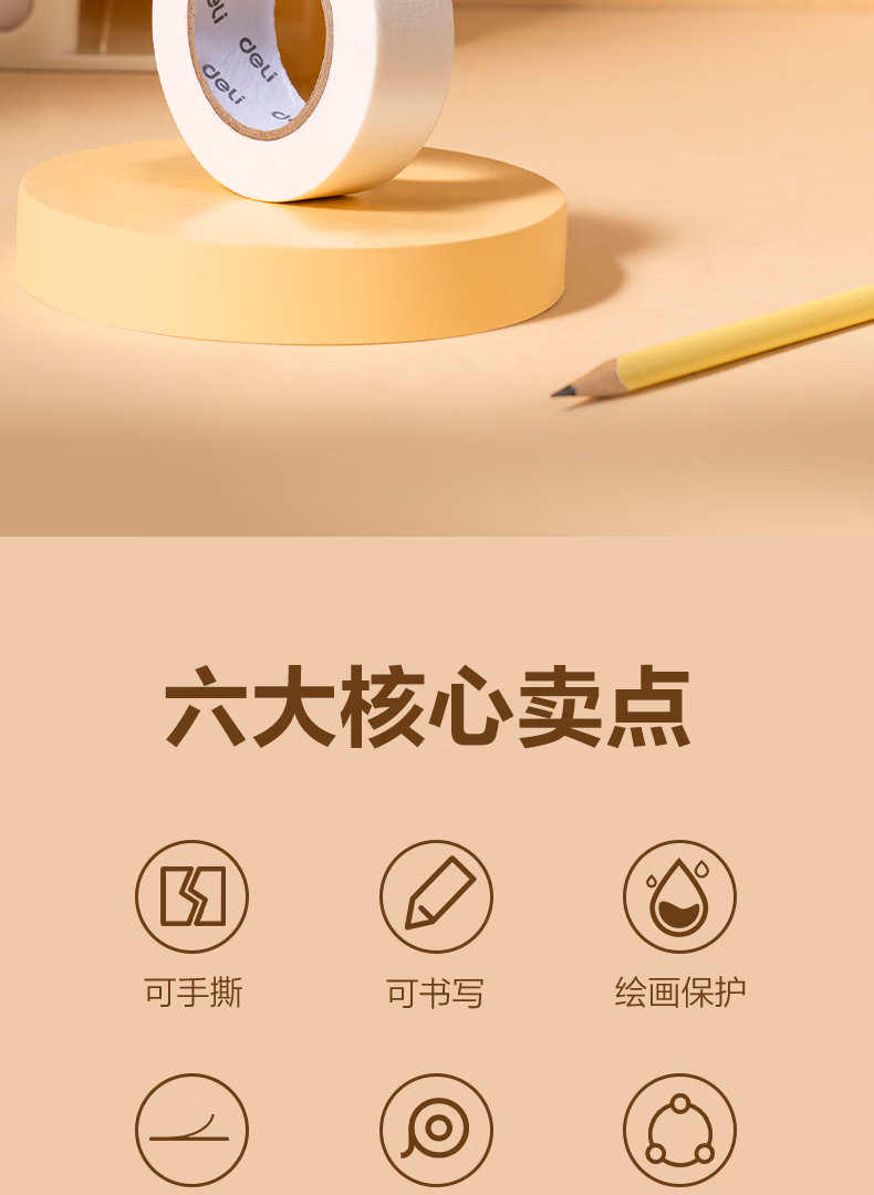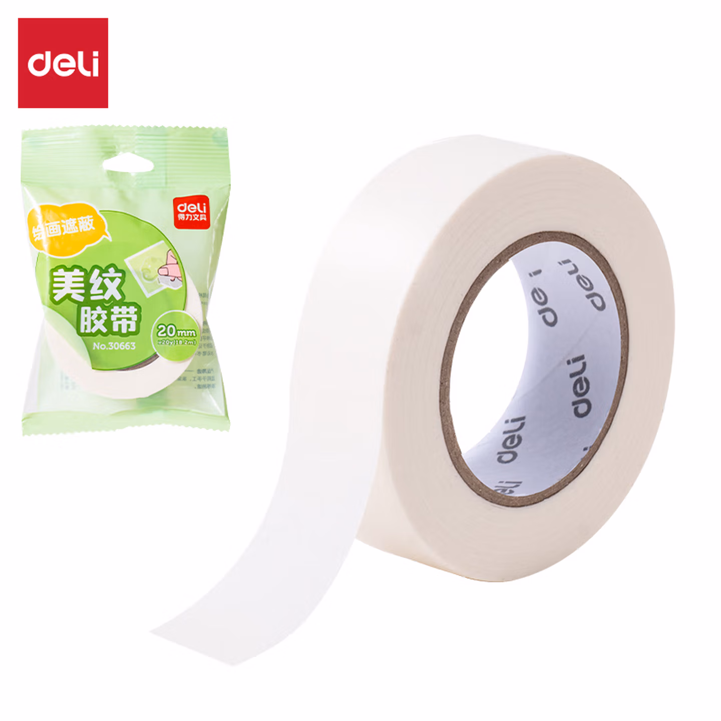 > 得力(deli)美纹纸胶带 36mm*20y*145μm 美术美工分色 装修遮蔽美缝贴膜刷漆保护无痕 18.3米/卷 1卷 30672