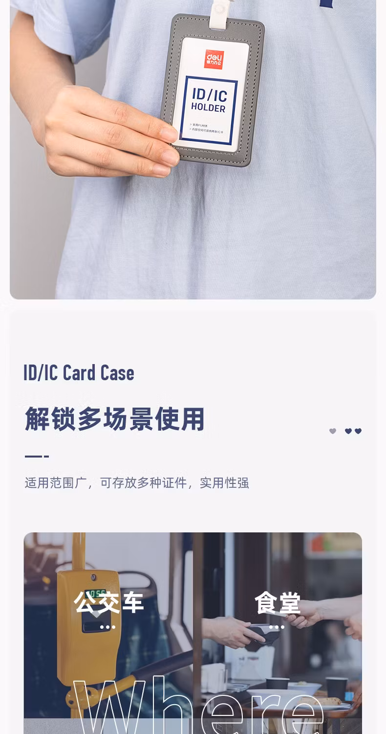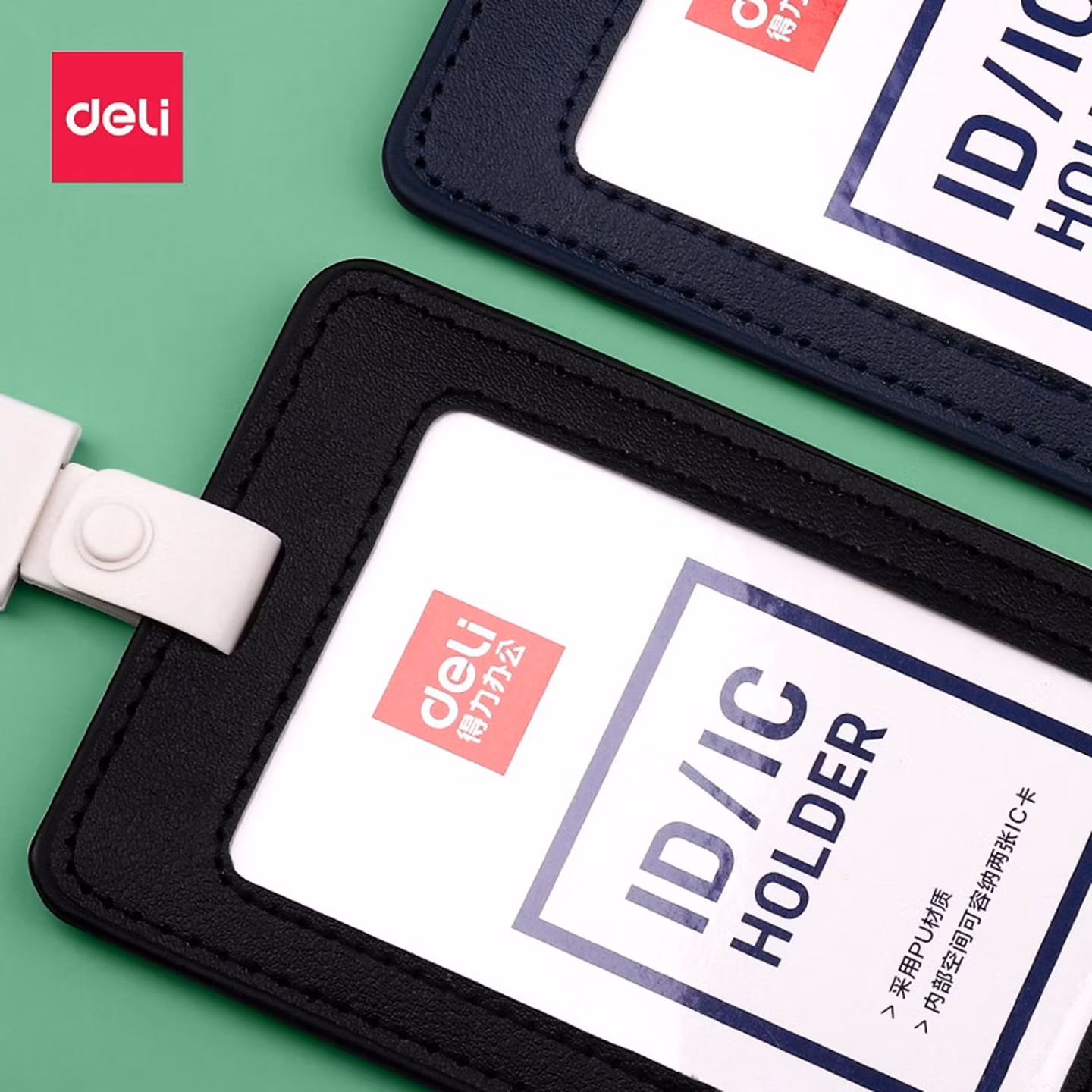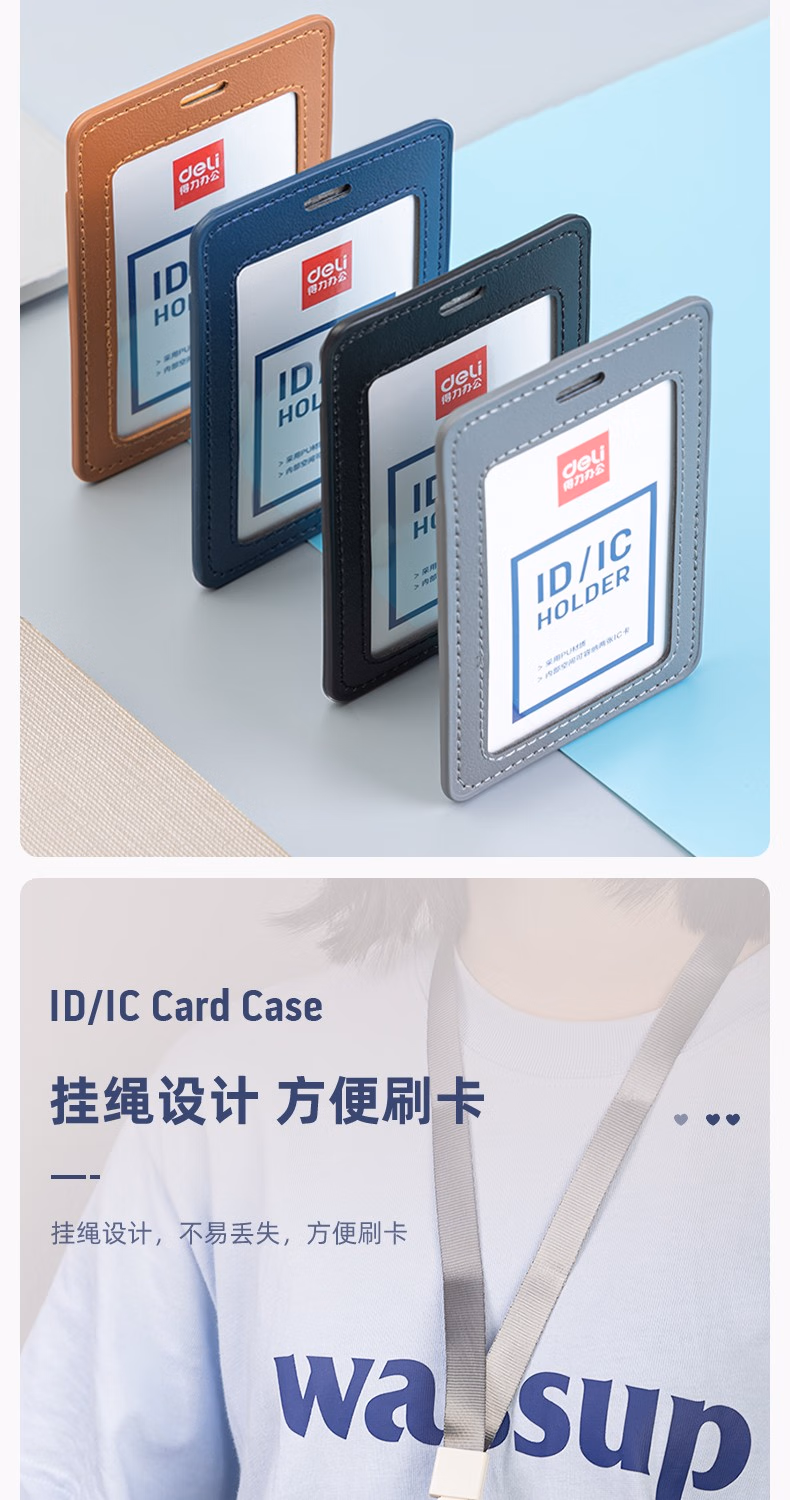 > 得力(deli)皮质证件卡套 竖式工作证胸牌员工工牌学生校园卡卡套 【黑色】2卡套+2挂绳