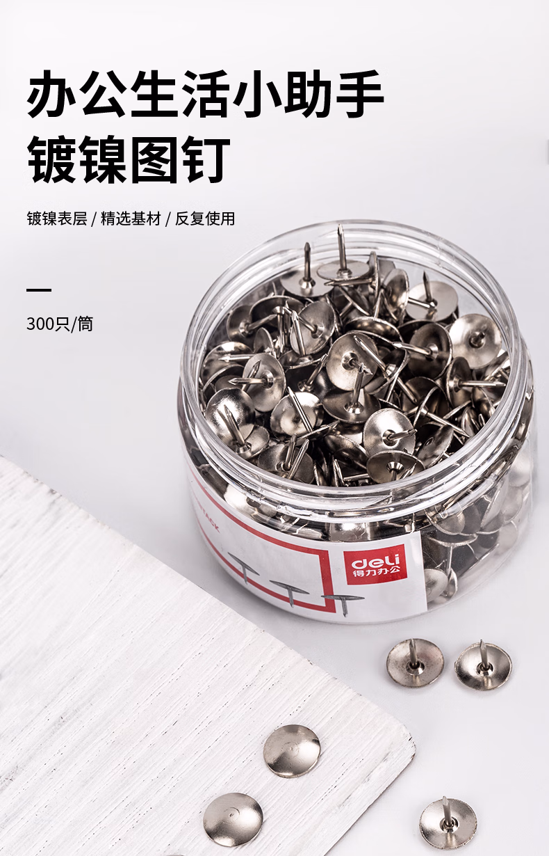 > 得力(deli)【超级爆款】镀镍图钉 软木板按钉 办公用品工字钉 照片钉 300枚/筒 0040