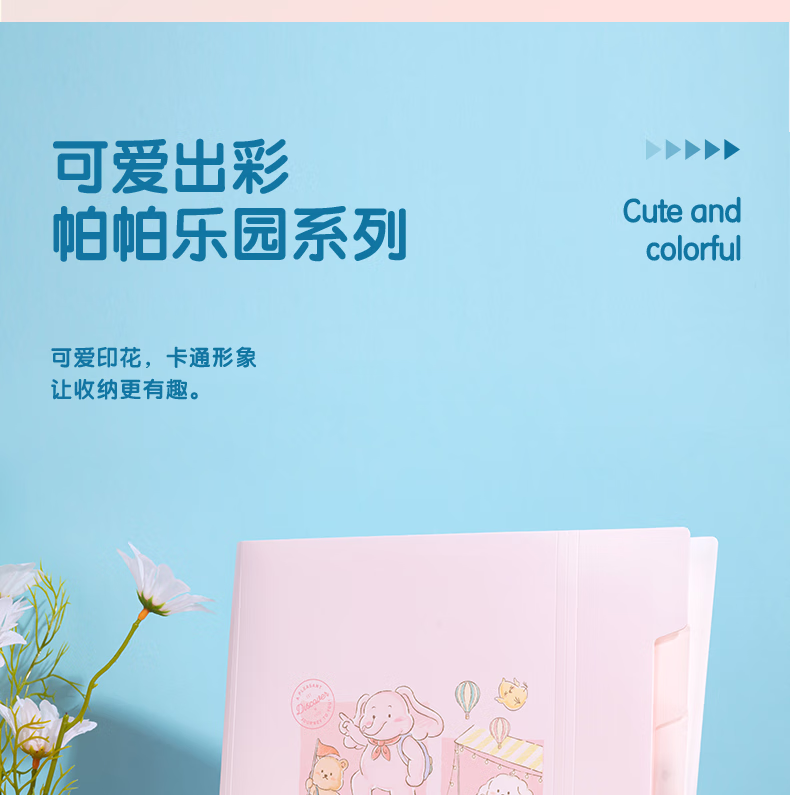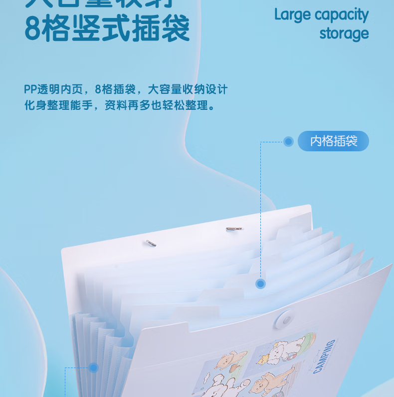> 得力(deli)A4/8格便携风琴包 文件资料手提包 文件框资料册收纳夹 试卷票据资料收纳册 文件保护 混色PM303