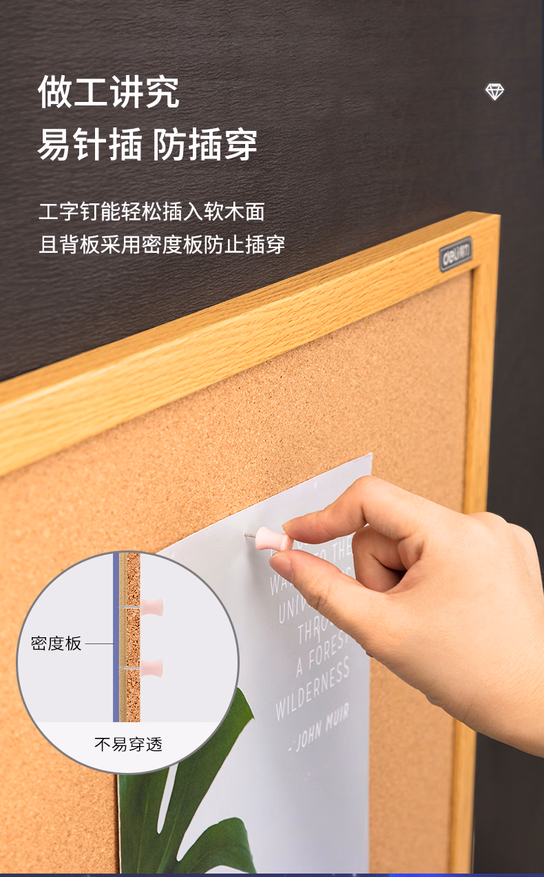 > 得力(deli) 90*60cm软木留言板 家用记事板 白板 可插针照片墙板图钉板 家用宿舍留言板8764