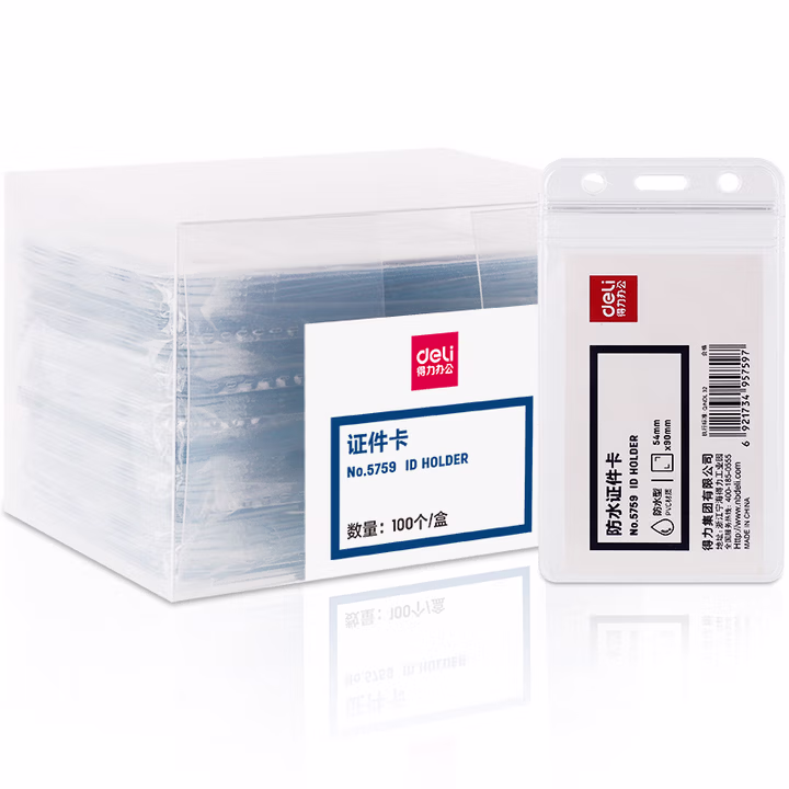 > 得力(deli)100个竖式防水工作牌证件卡套工作证员工牌公交卡套饭卡门禁地铁卡套 学生胸牌透明5759