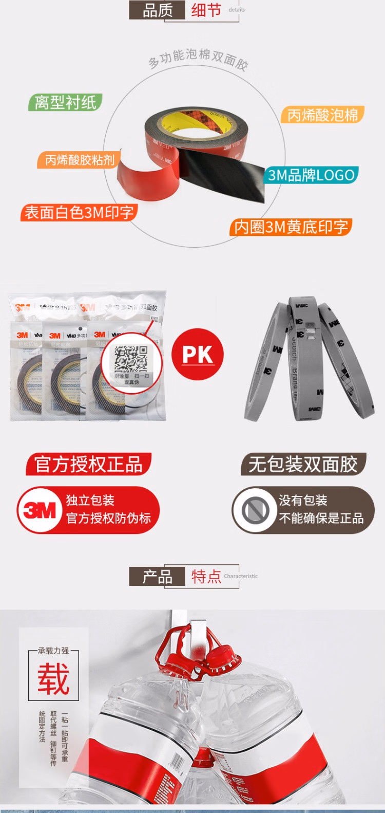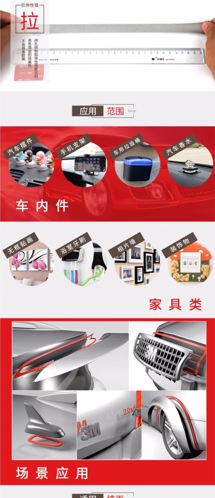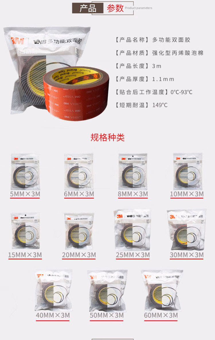 > 3M双面胶强力无痕黑色耐高温ETC车载支架 5952 20MM*3M