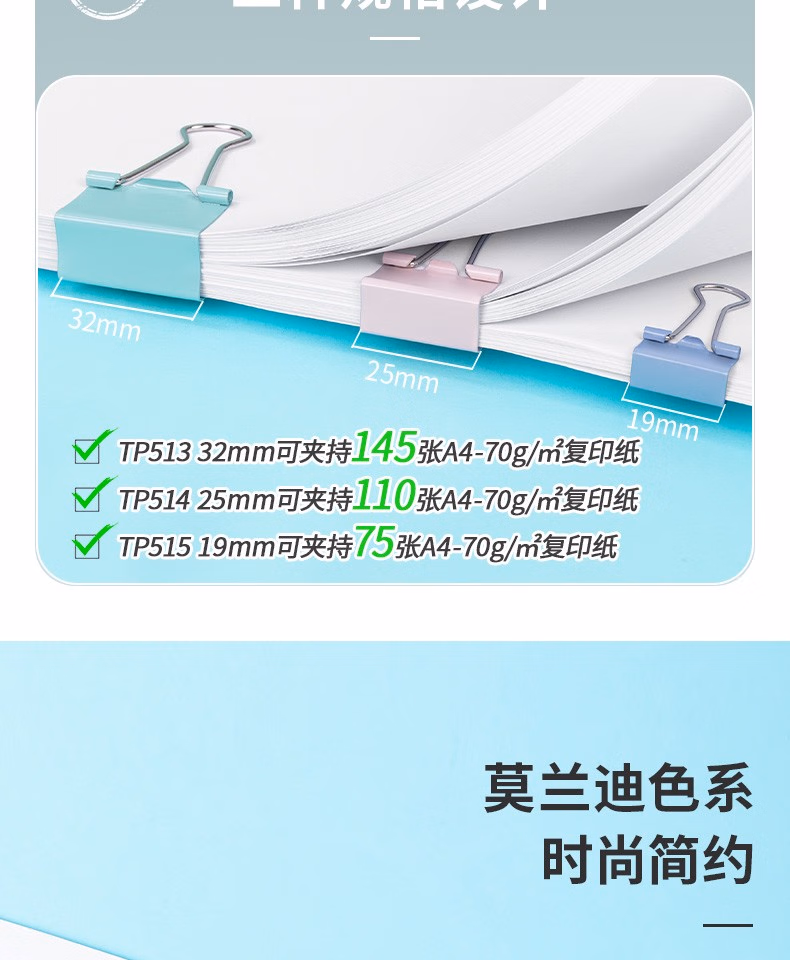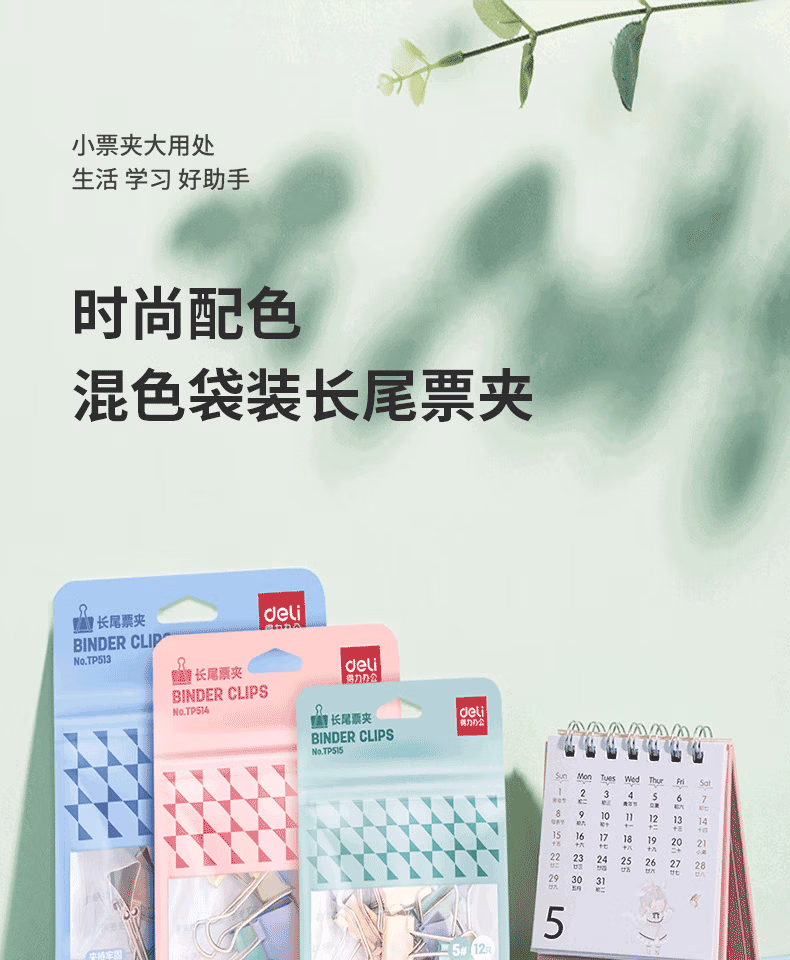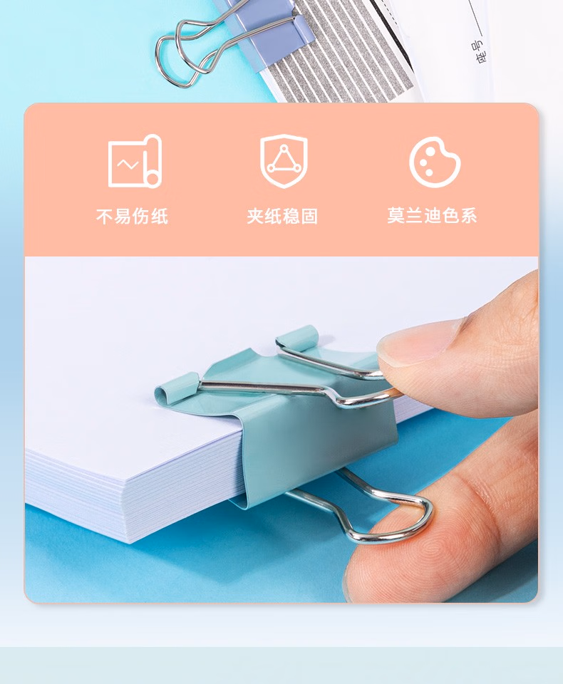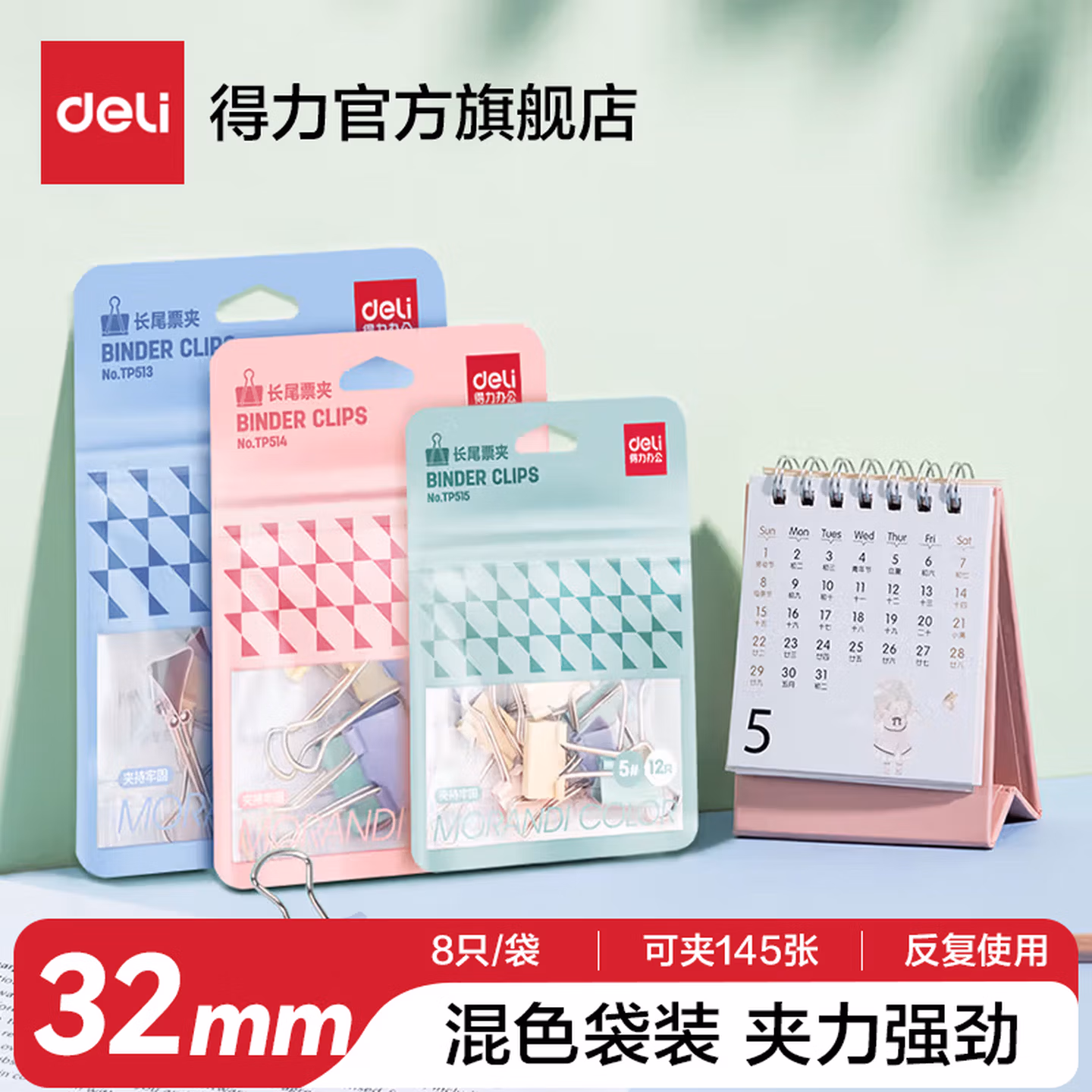 > 得力(deli)莫兰迪色系票夹长尾夹燕尾夹学科分类夹语文数学英语分类整理神器资料夹卷子夹学生书夹票据 8只/袋 32mm通用票夹 TP513