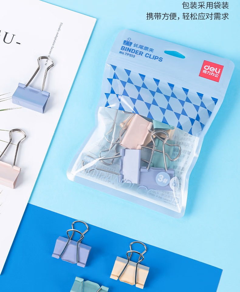 得力(deli)莫兰迪色系票夹长尾夹燕尾夹学科分类夹语文数学英语分类整理神器资料夹卷子夹学生书夹票据 8只/袋 32mm通用票夹 TP513