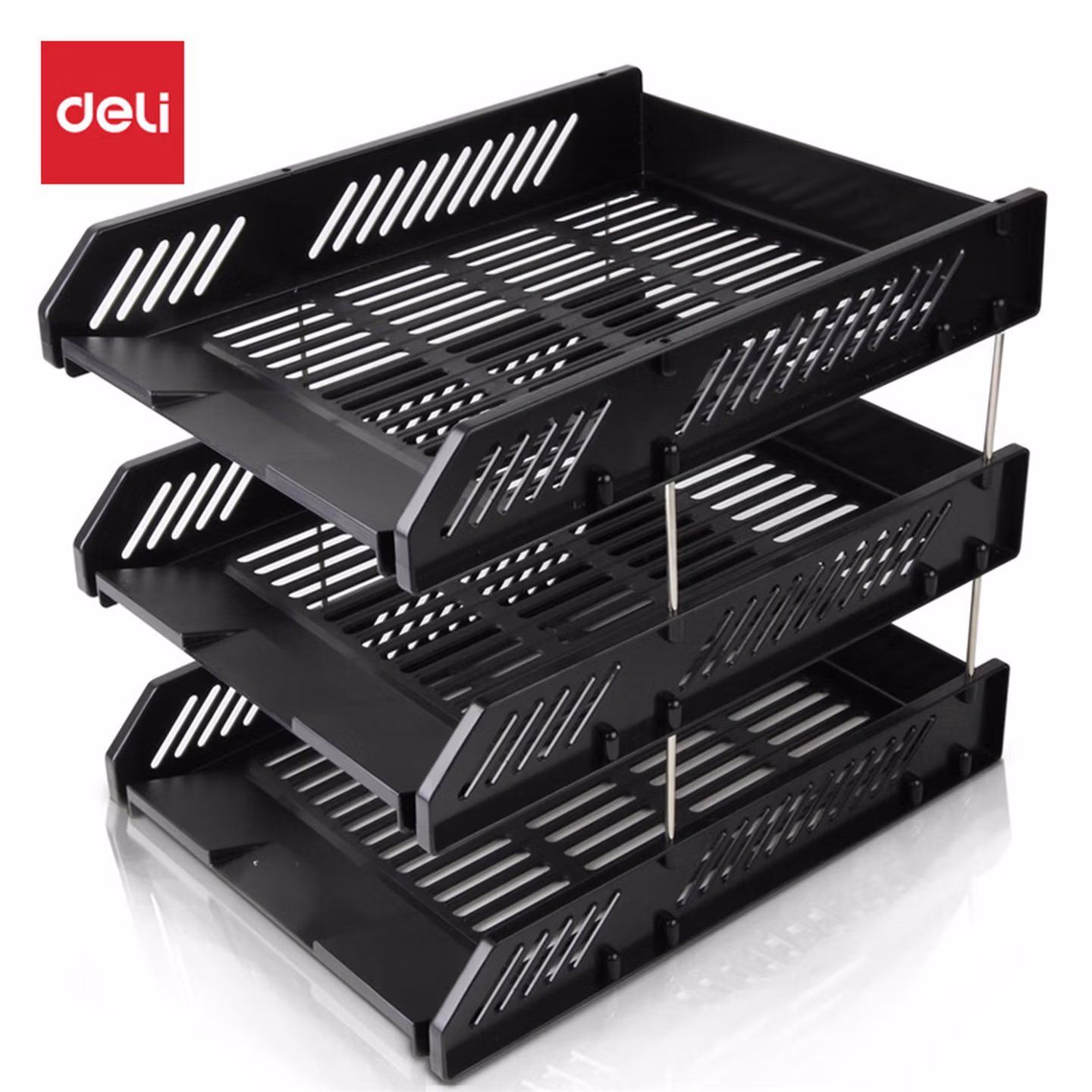 得力(deli)三层镂空收纳文件座自由拆卸组装文件盘/文件框栏桌面档案收纳盒文件置物架管理 黑色9209