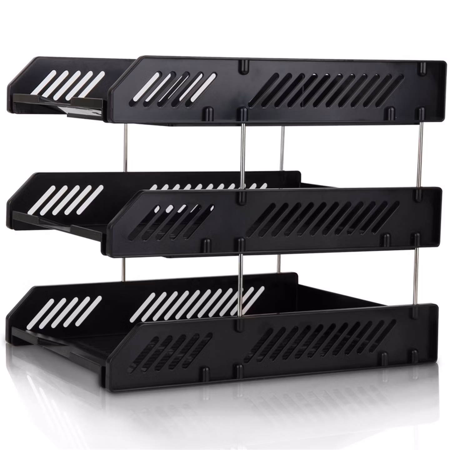 > 得力(deli)三层镂空收纳文件座自由拆卸组装文件盘/文件框栏桌面档案收纳盒文件置物架管理 黑色9209