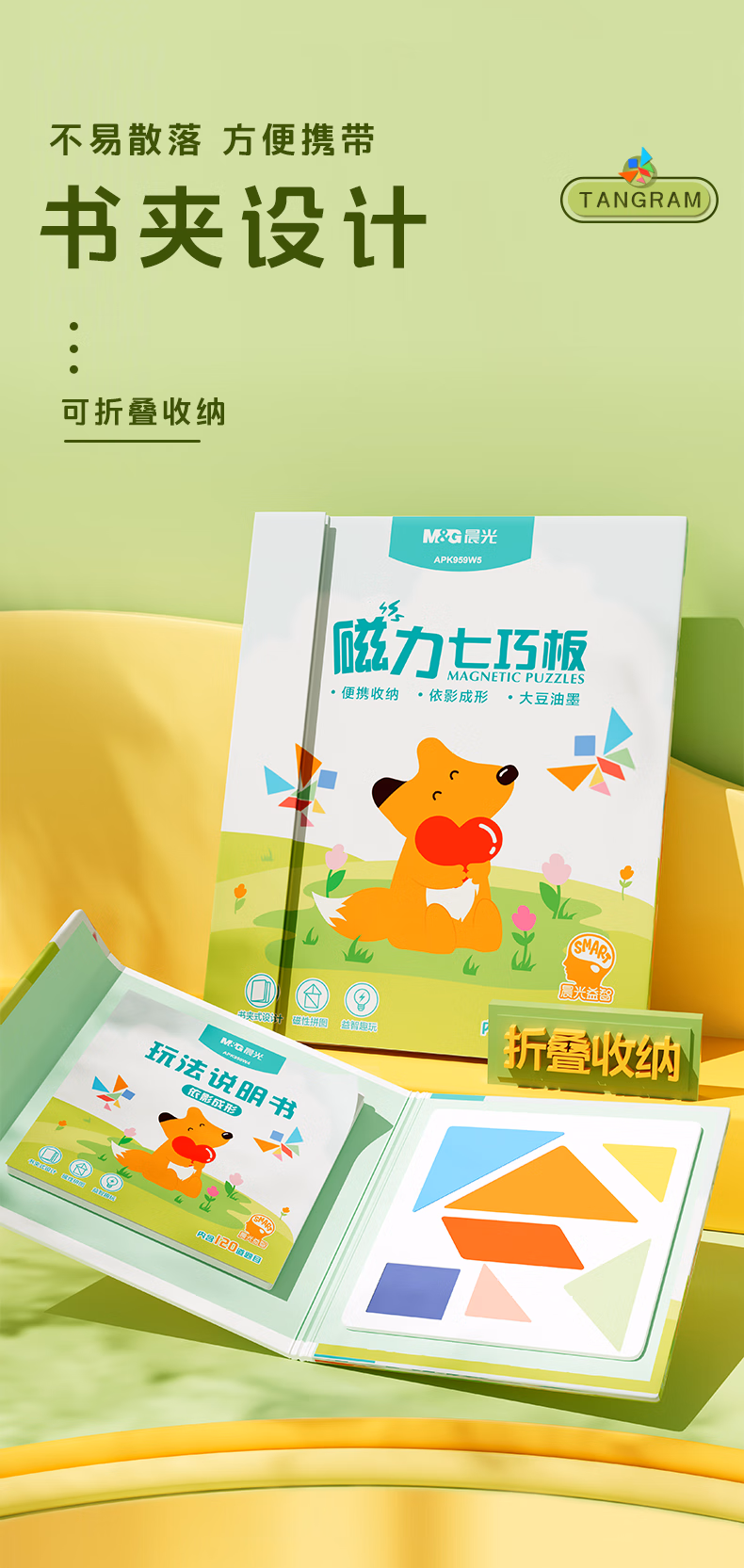 > 晨光(M&G)文具儿童折叠磁性七巧板拼图 几何图形认知启蒙积木 学生幼儿园益智创意礼物 教学用具中号