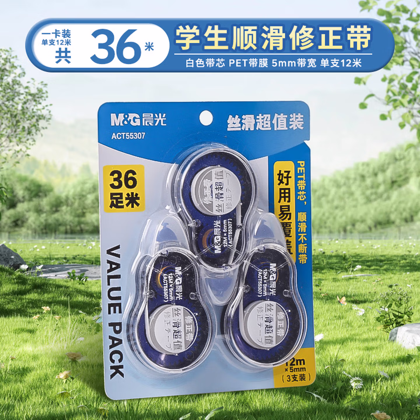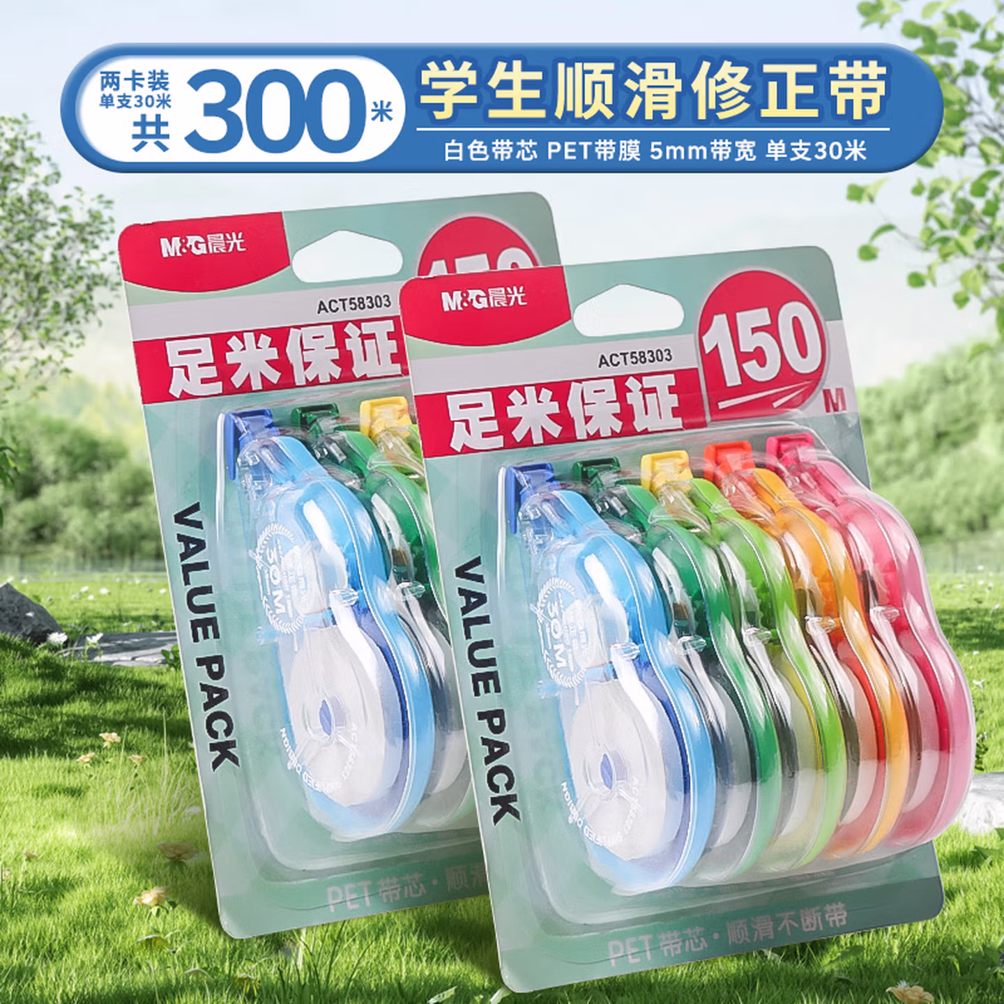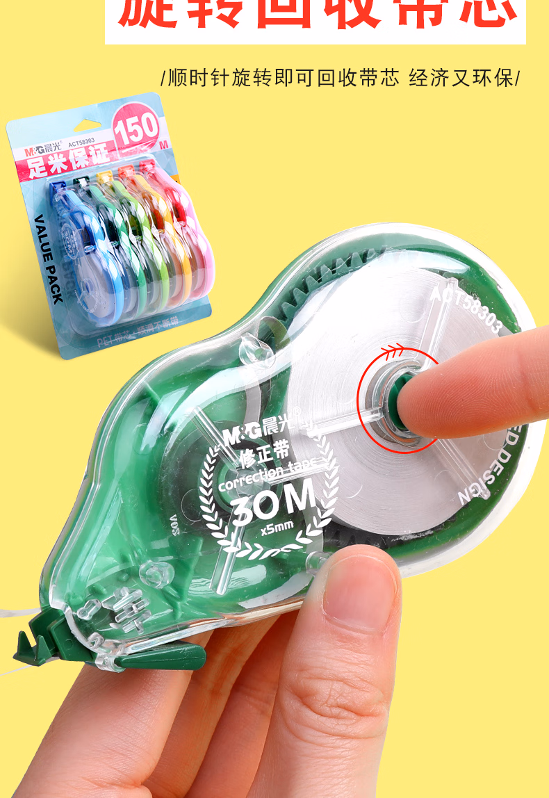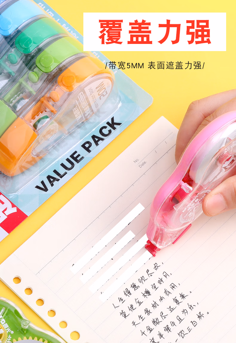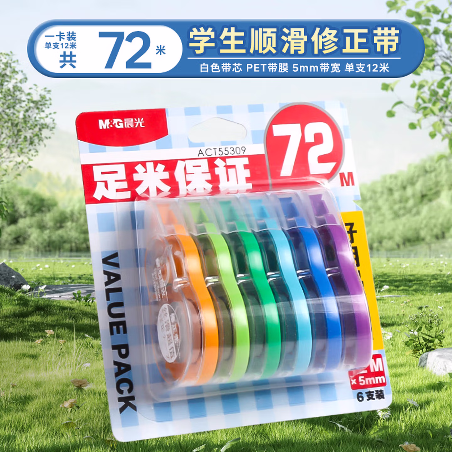 > 晨光(M&G)修正带涂改带学生72米改正带初中学生用创意多功能实惠装150米大容量200米修正带少女学生文具批发 6个装72米/55308