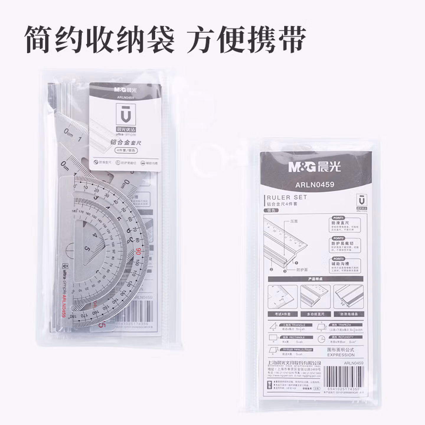 晨光(M&G)优品系列铝合金套尺学生绘图专业考试绘图(15cm直尺+三角尺*2+量角器)ARLN0459