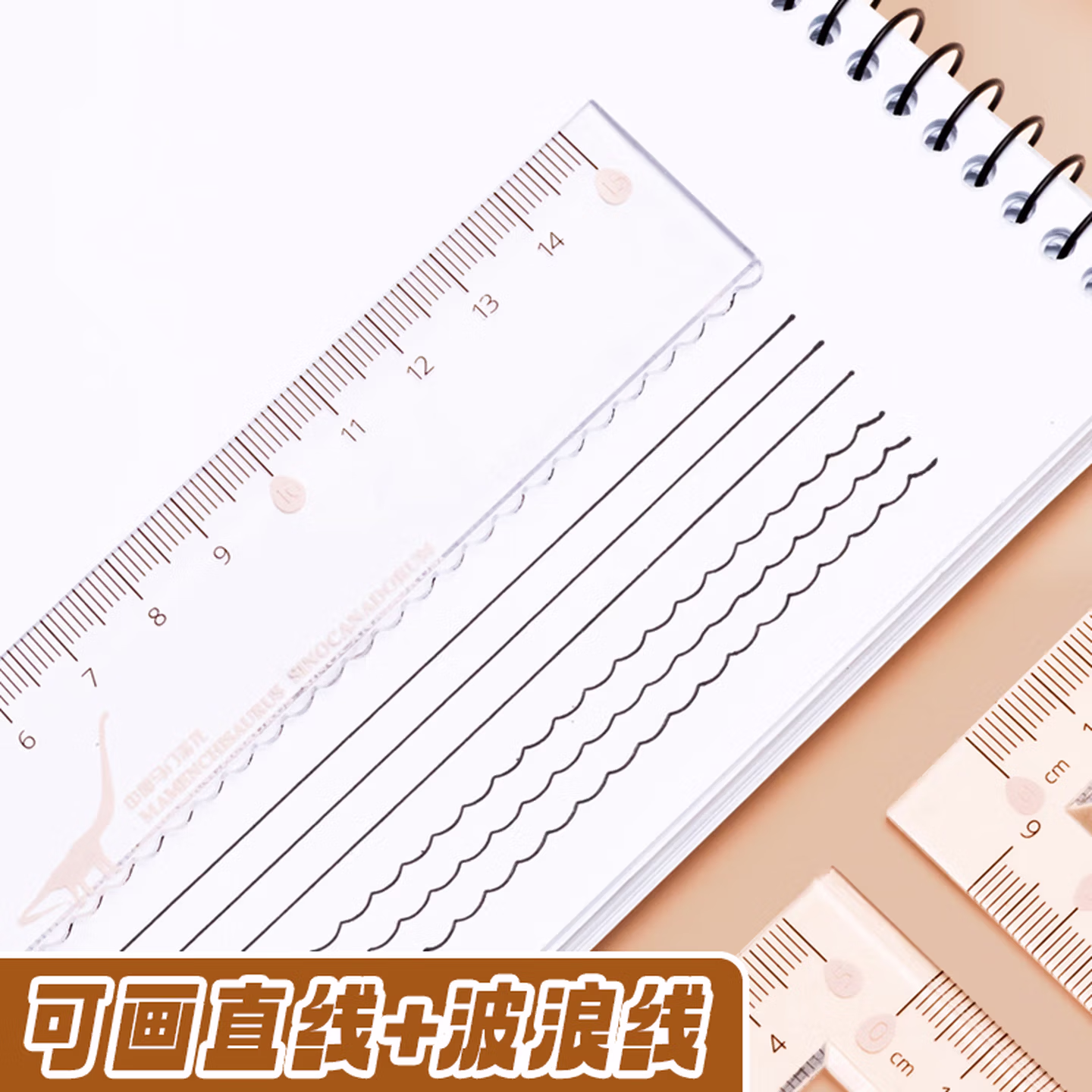 晨光(M&G)文具套尺 学生考试4件套(15cm直尺+量角器+三角尺*2)波浪尺子 中华恐龙系列ARL960Z4