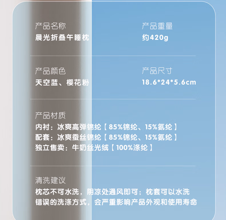 > 晨光(M&G)文具可调折叠午睡枕 小学生护脊护眼午休枕头 儿童不压手趴睡枕 开学文具AHAN4735粉幼儿园毕业礼物