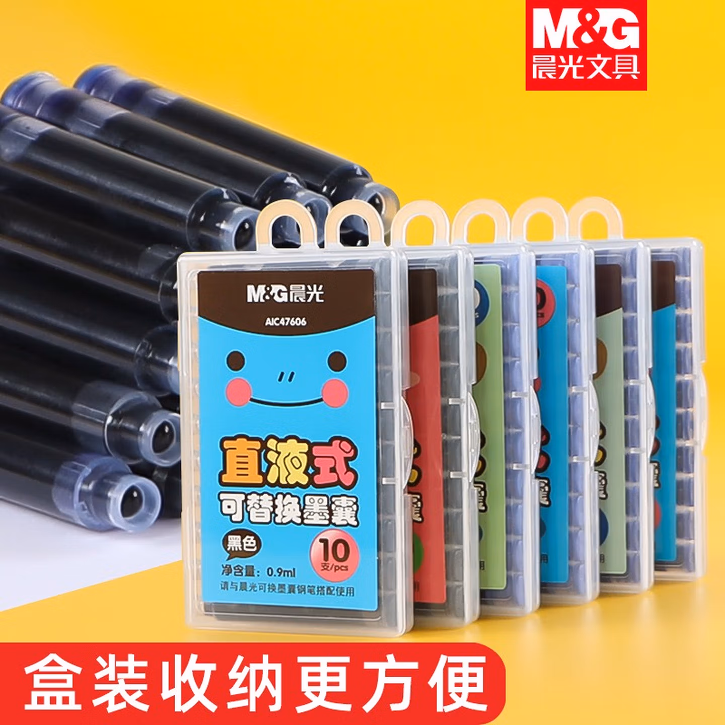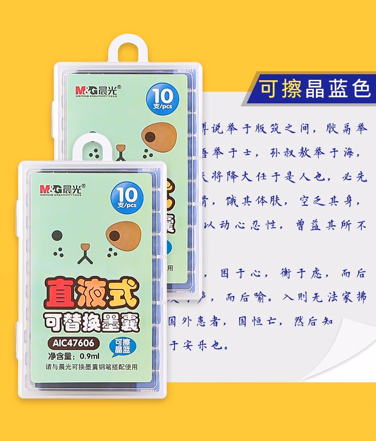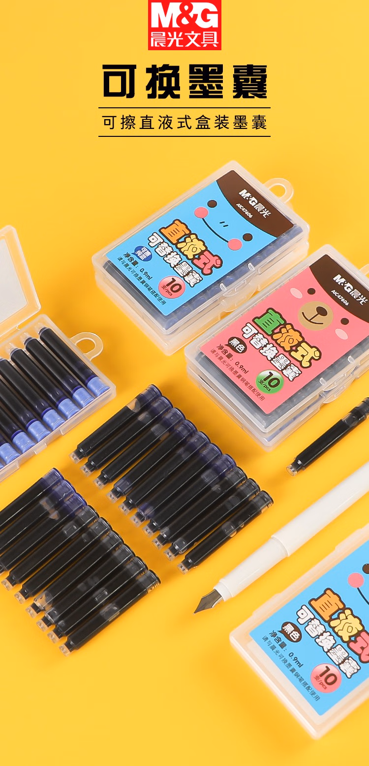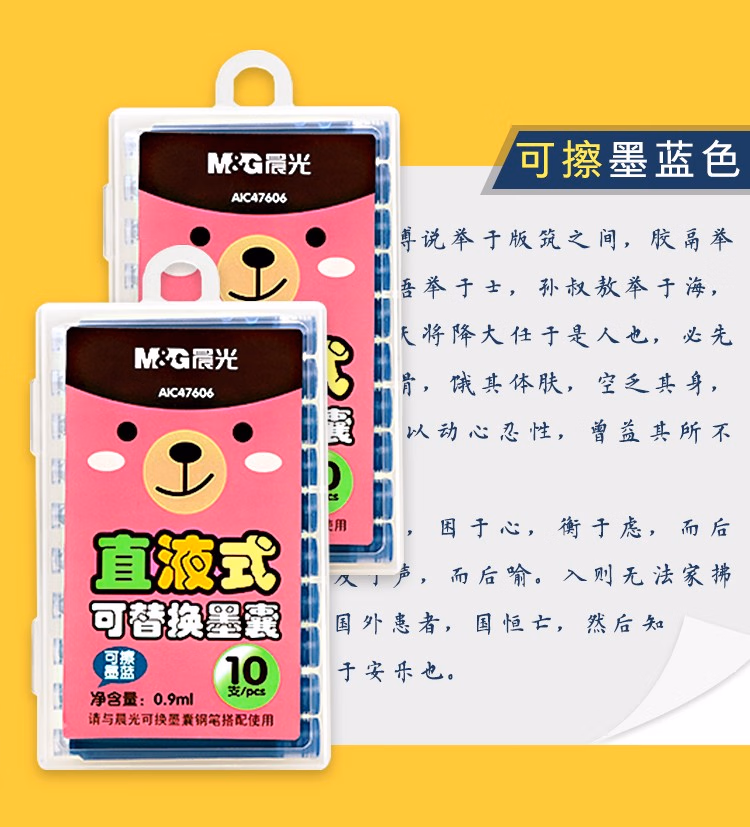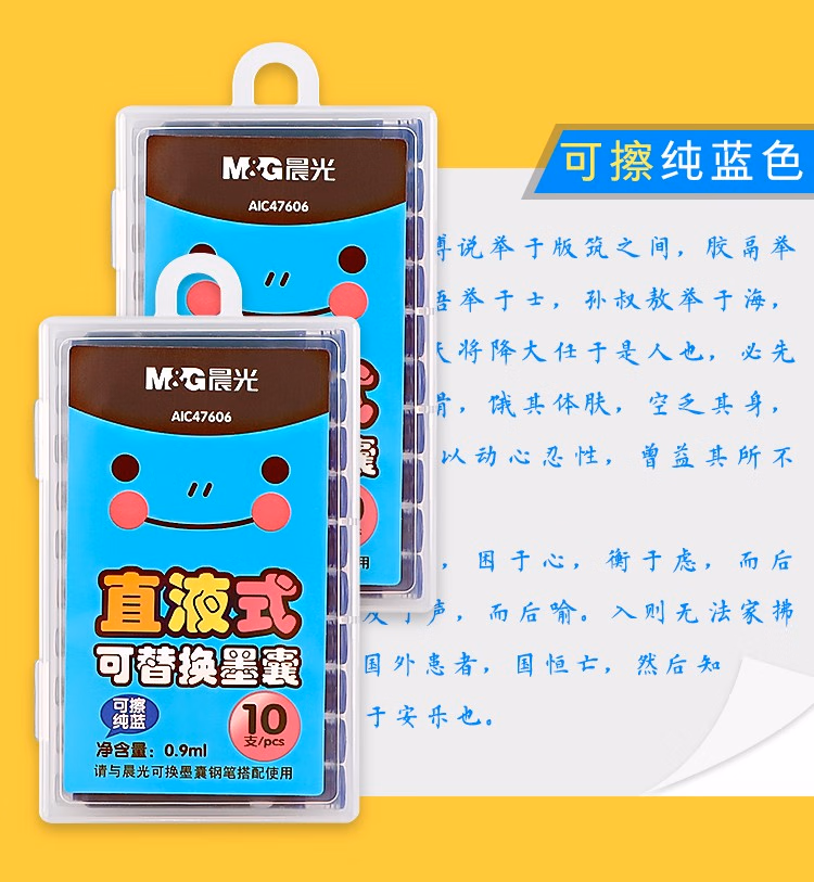 > 晨光(M&G)文具0.9ml可擦纯蓝色墨囊 可替换钢笔墨囊 30支/盒AIC47648B3