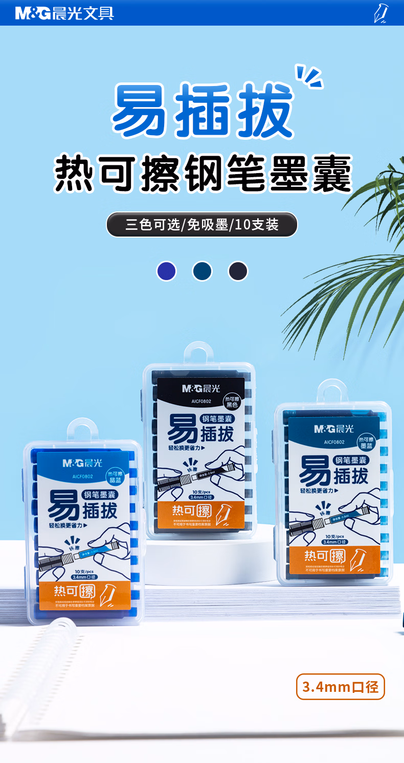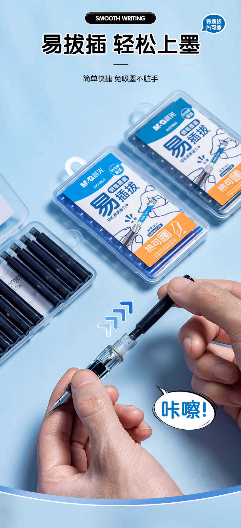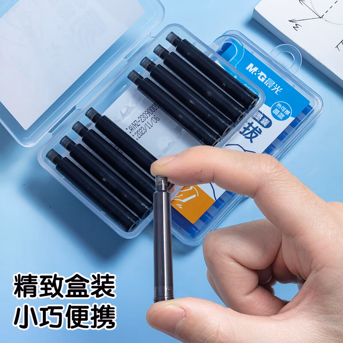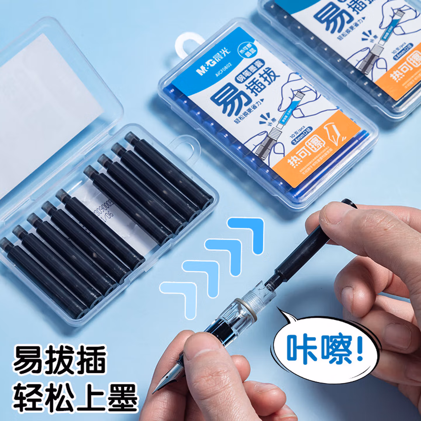> 【学生暑期】晨光(M&G)文具热可擦晶蓝色钢笔墨囊 2.6mm口径可替换学生钢笔墨水笔墨囊 学生练字30支装AICT3607B2