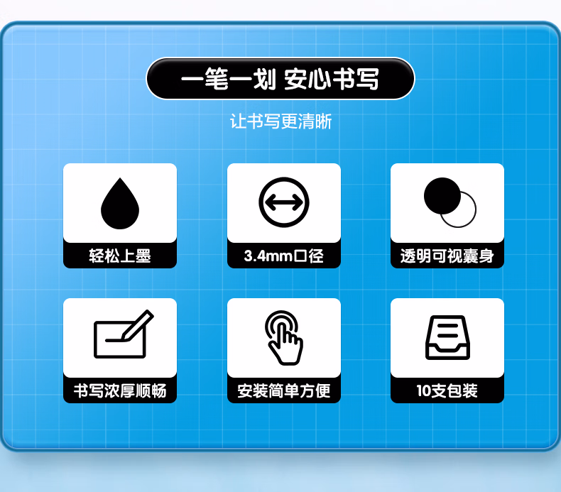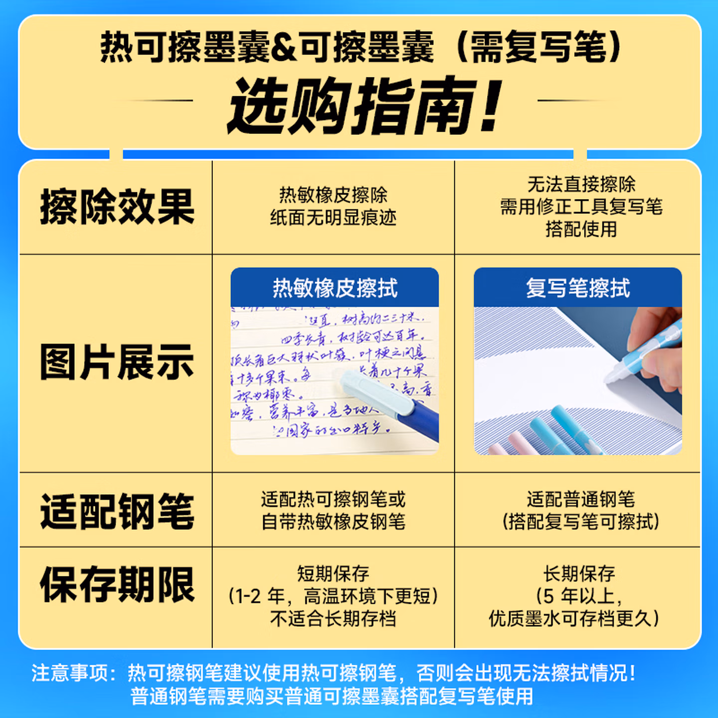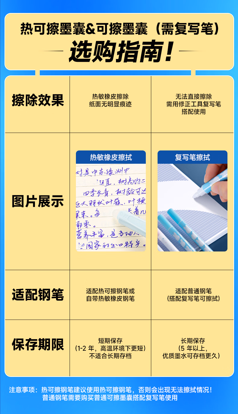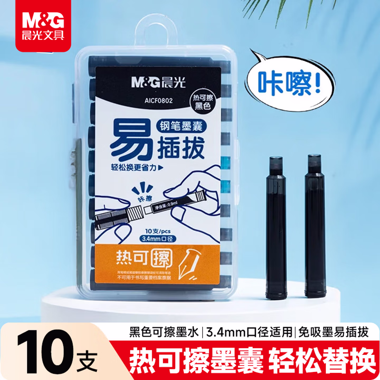 > 【学生暑期】晨光(M&G)文具热可擦晶蓝色钢笔墨囊 2.6mm口径可替换学生钢笔墨水笔墨囊 学生练字30支装AICT3607B2