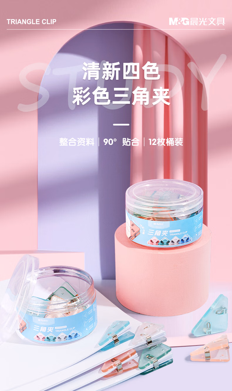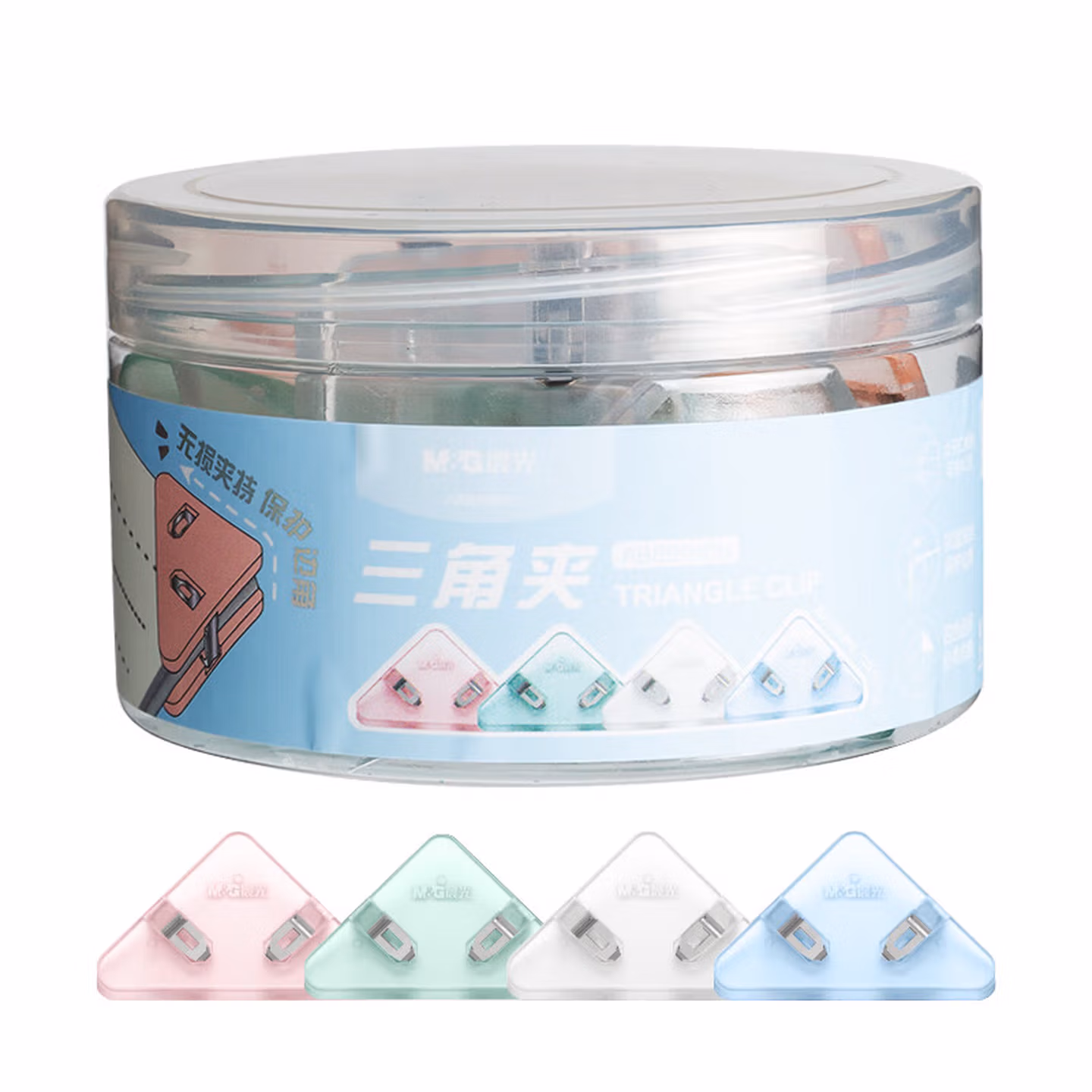 > 晨光(M&G)文具四色防卷边三角夹 防翘边边角夹 办公文件整理收纳票据夹 试卷资料书角保护夹12只筒装ABS916EN