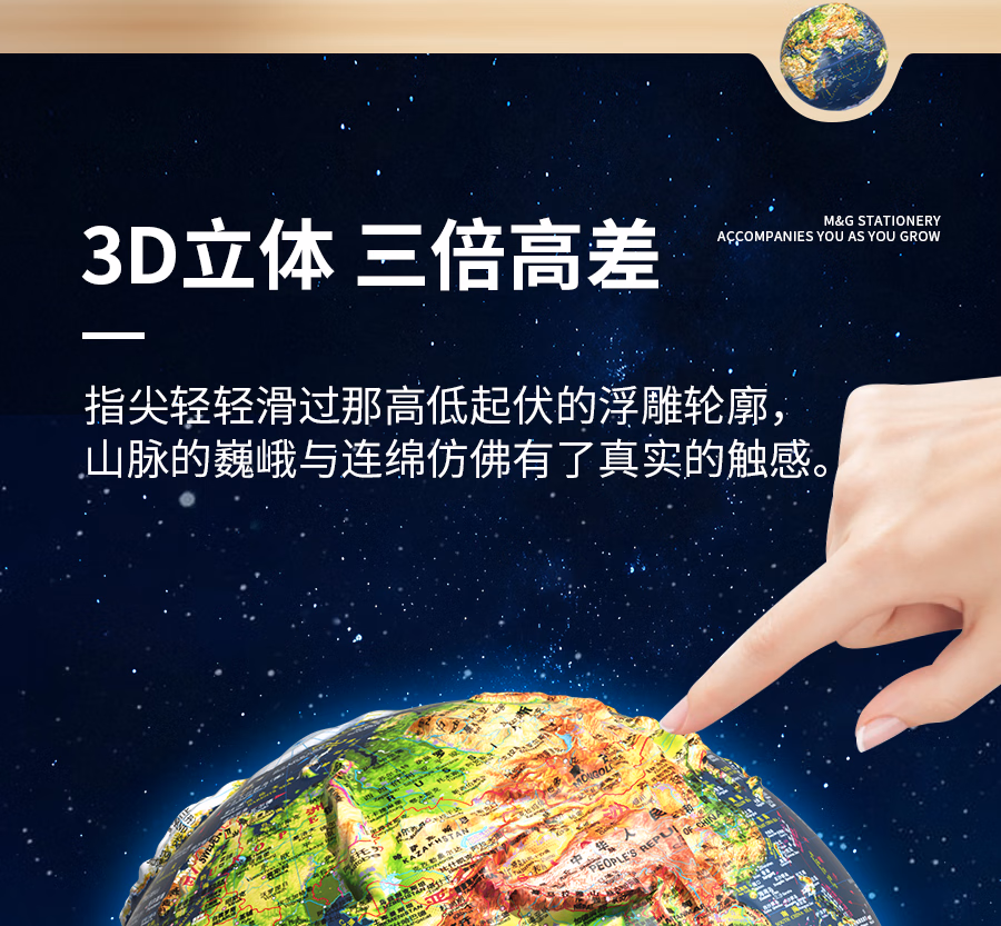 晨光(M&G) 浮雕AR地球仪教学3D立体学生高清卫星智能语音台灯大号开学季益智文具生日儿童男孩女孩礼物摆件 【6mm高浮雕点读款】25cm(720°+三色灯+AR)