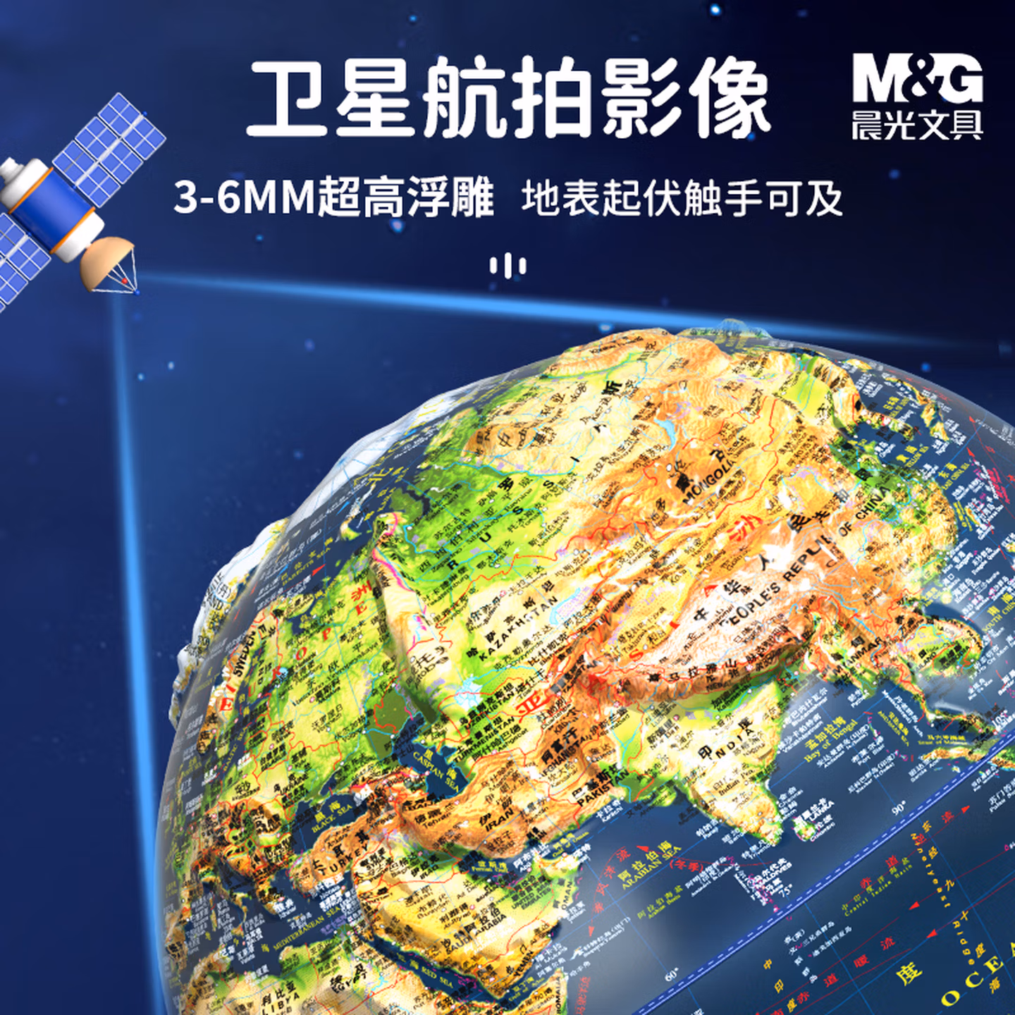 > 晨光(M&G) 浮雕AR地球仪教学3D立体学生高清卫星智能语音台灯大号开学季益智文具生日儿童男孩女孩礼物摆件 【6mm高浮雕点读款】25cm(720°+三色灯+AR)