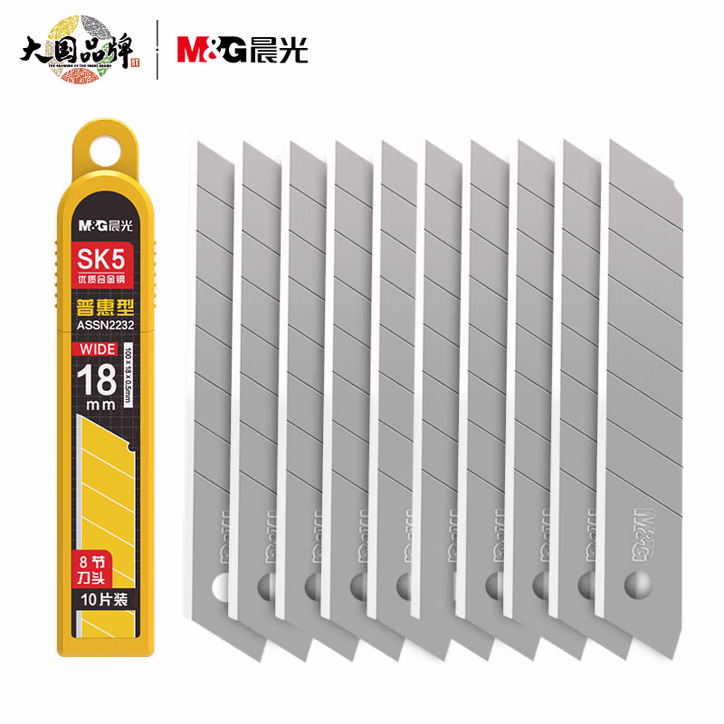 > 晨光(M&G)文具18mm锌合金金属大号美工刀 自锁裁纸刀壁纸刀 银色单把装ASS91360 ASS91413/18mm-合金钢刀片-10片
