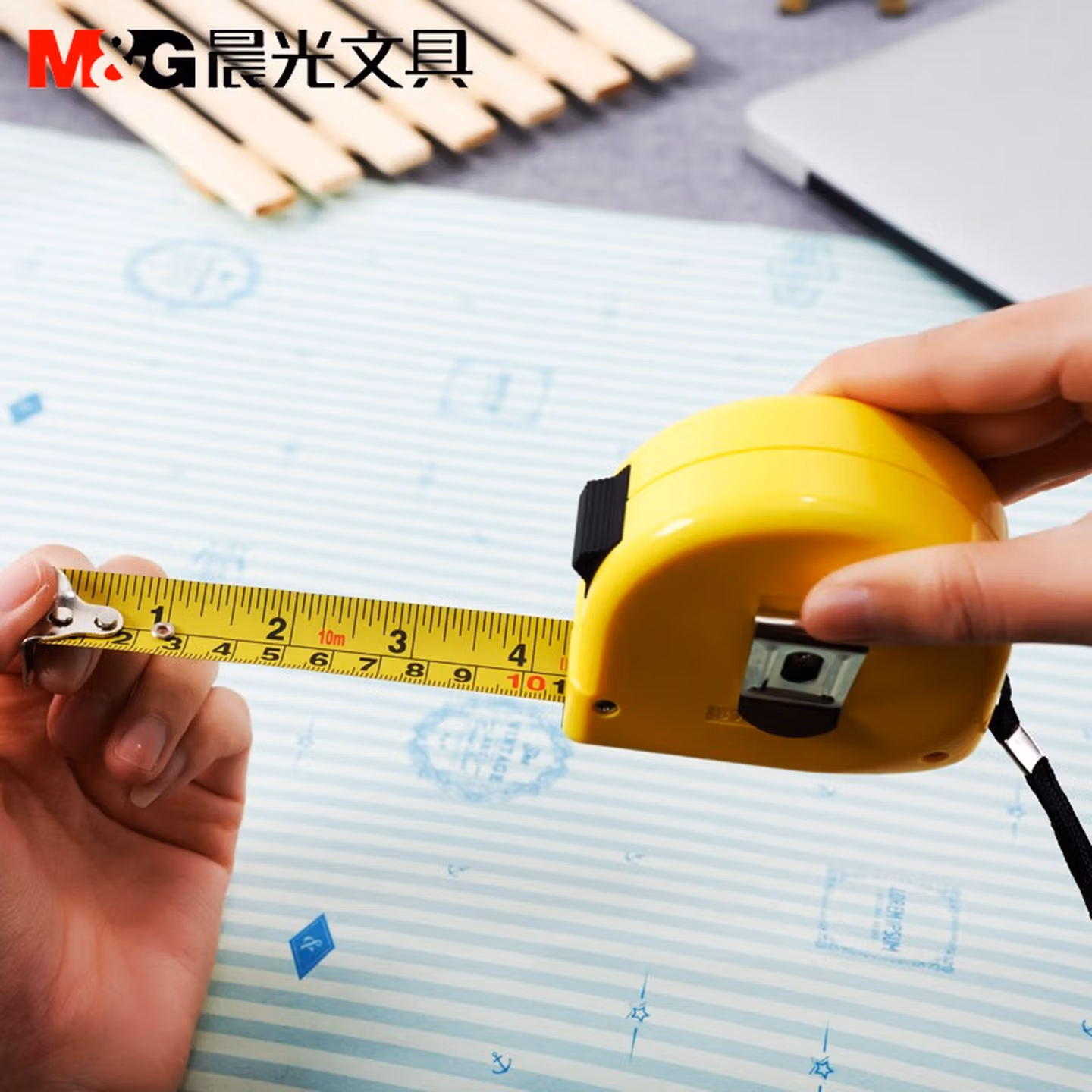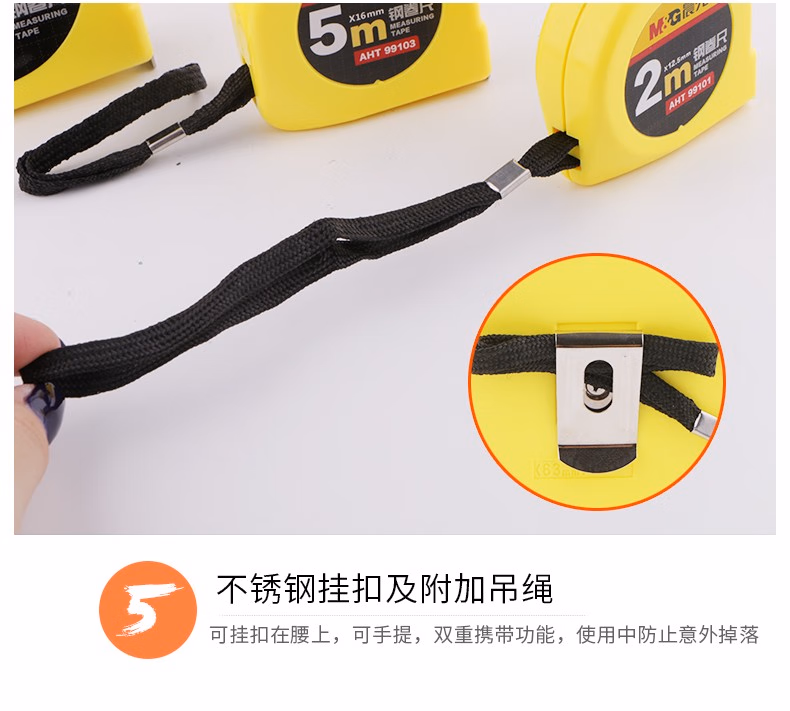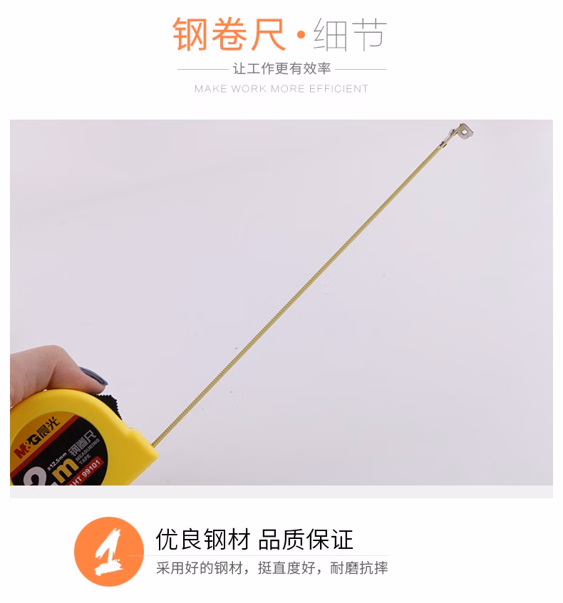 > 晨光(M&G)文具5m自锁钢卷尺 办公/家庭装修通用尺子 精准测量钢卷盒伸缩尺 单个装AHT99108