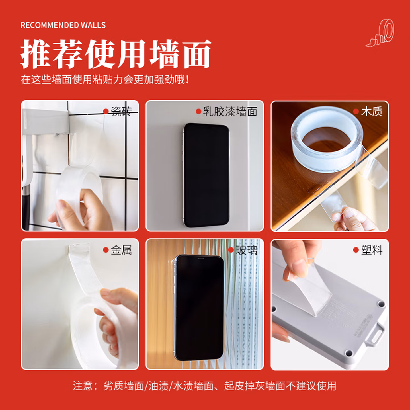 > 晨光(M&G)文具50mm*3m*1mm纳米强力无痕胶带 透明无痕春联胶贴双面胶AJD957F2