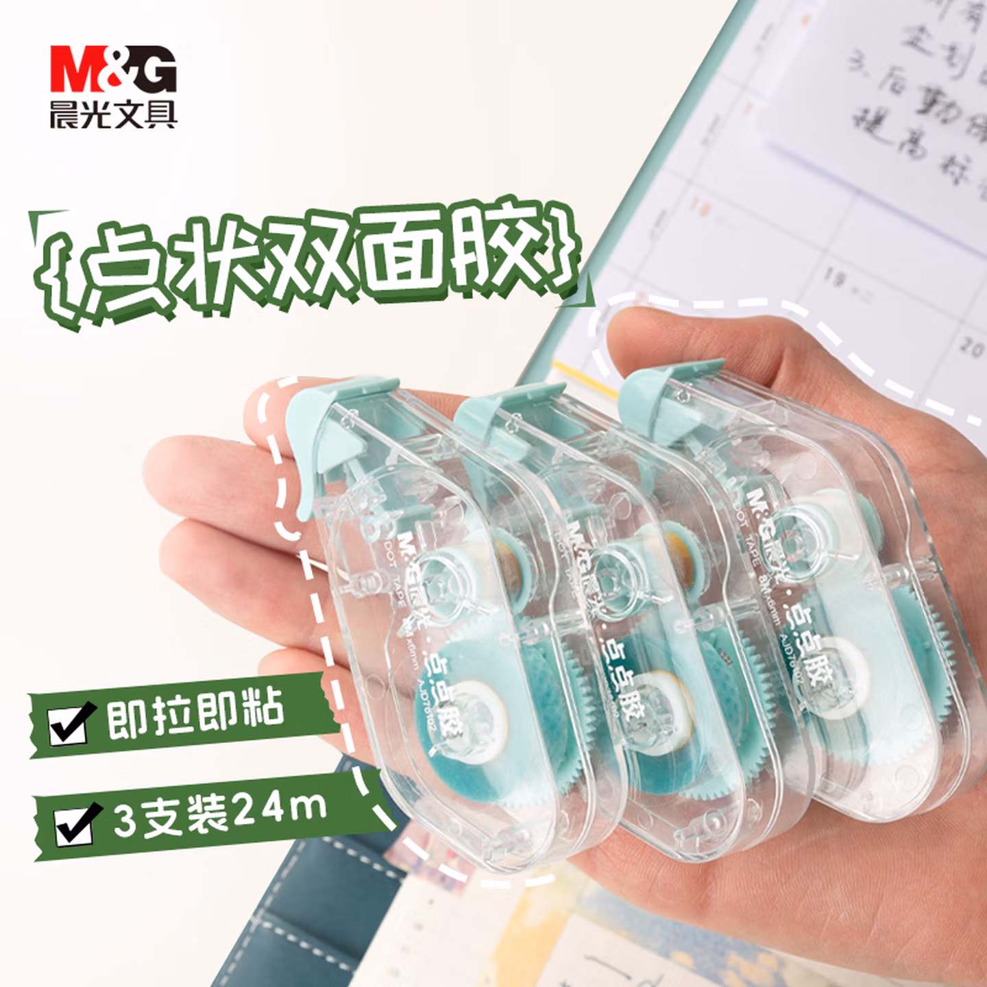> 晨光24m点状双面胶超值装 8m*6mm点点胶 防尘全包设计 手工手账黏贴固定胶 三支装开学文具AJD76102