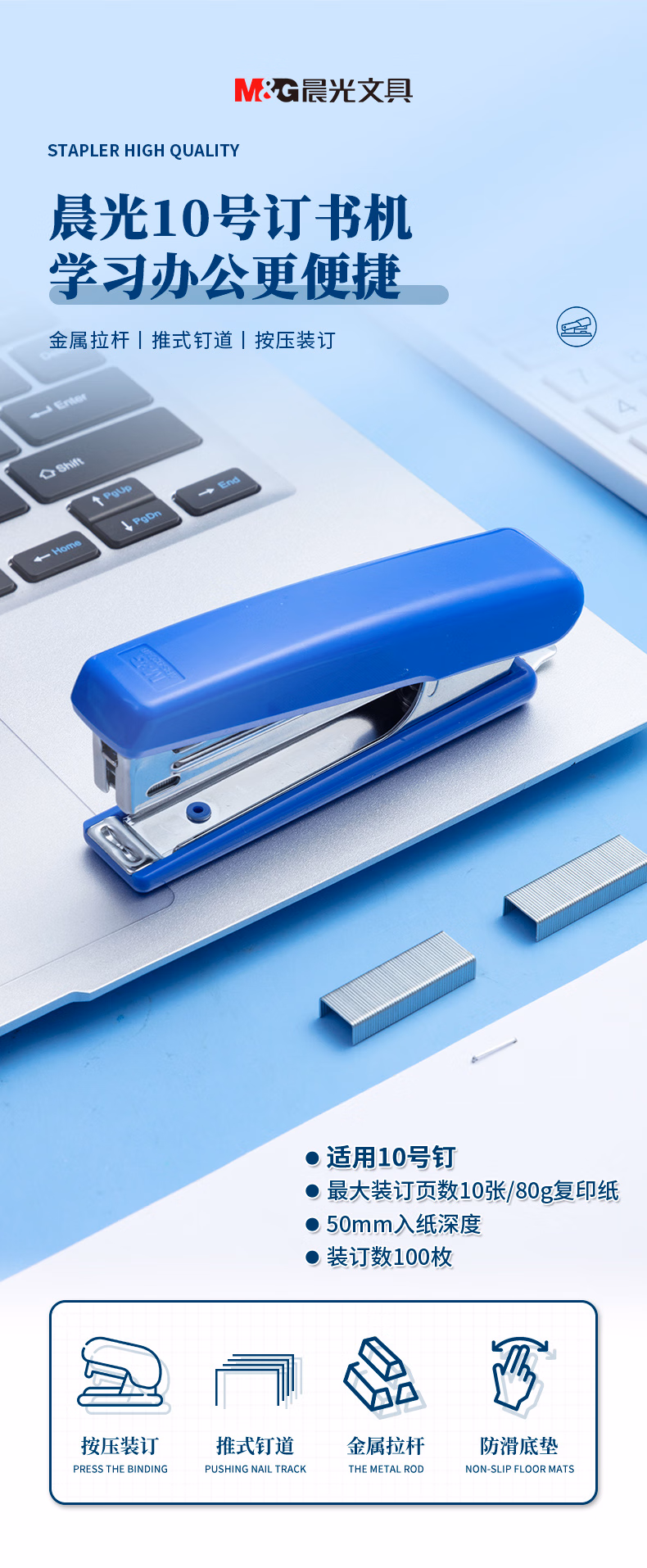 > 晨光(M&G)10#订书机办公商务订书机高效省力结构弹出式钉道 办公用品 单个装ABS92748