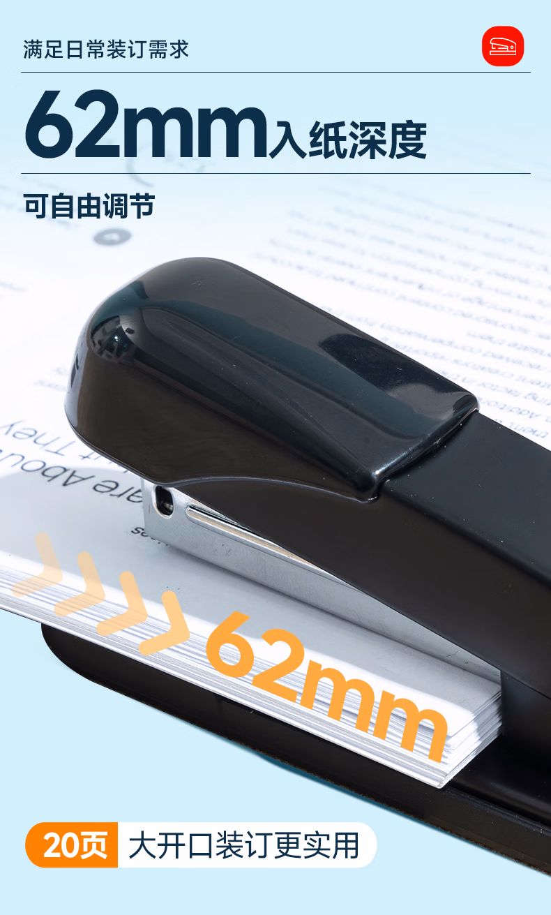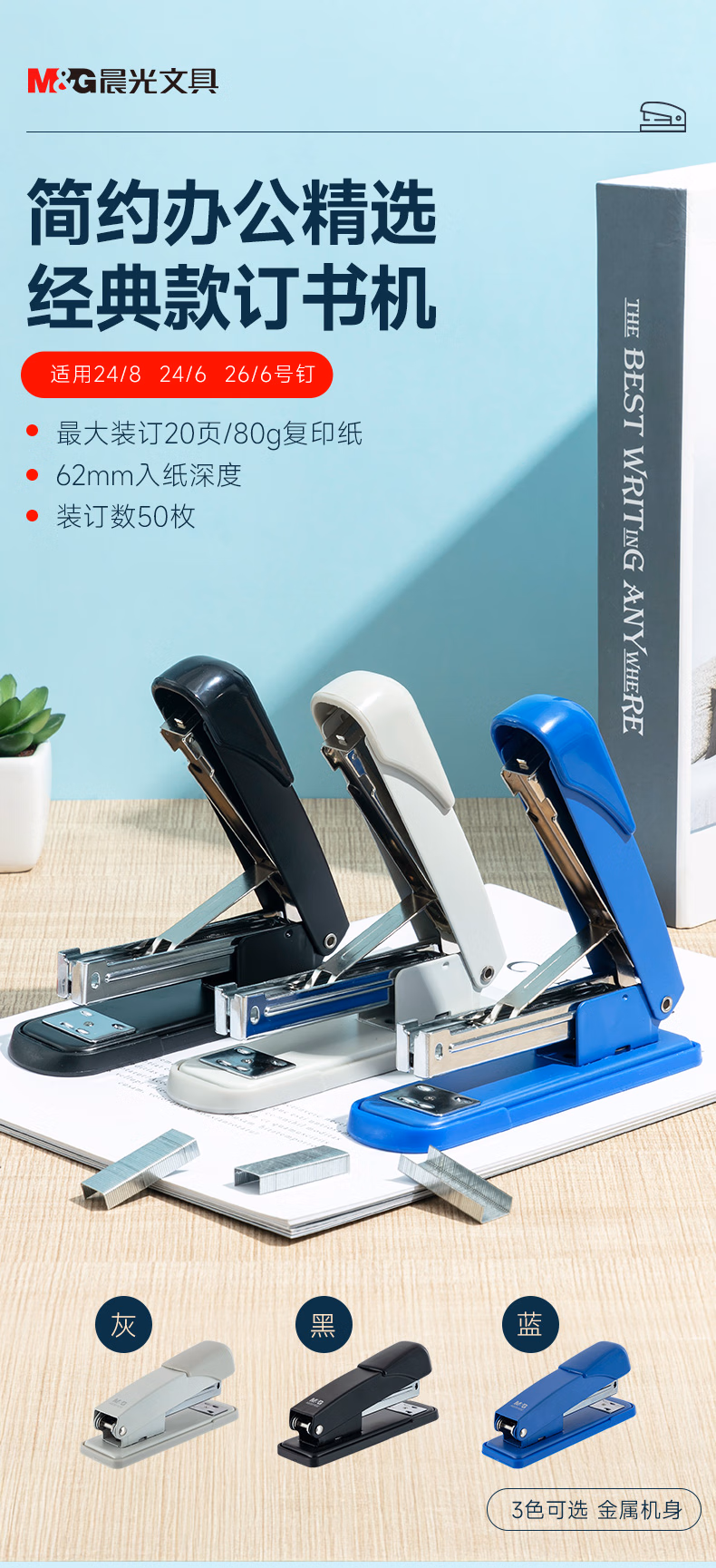 > 晨光(M&G)12#订书机 经典商务金属订书器 按压装订学生办公用品 适配12#订书钉 黑色 ABS91632