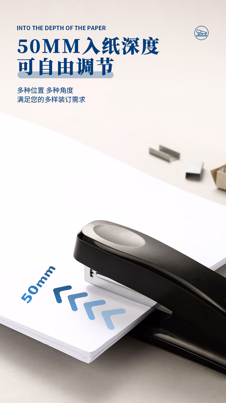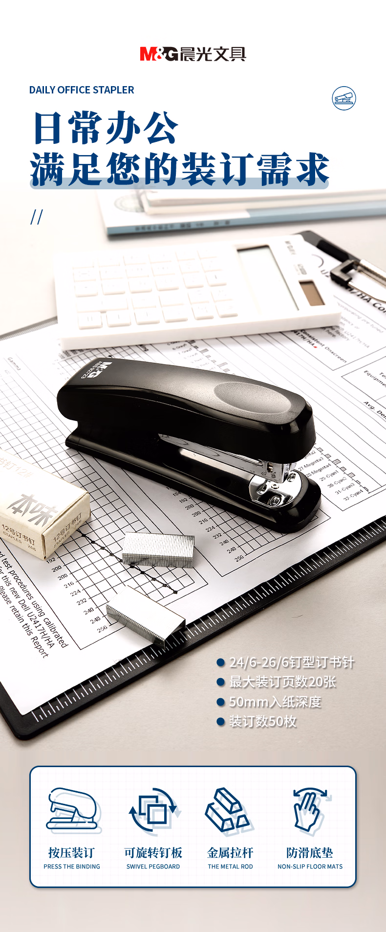 > 晨光(M&G)文具12#订书机 耐用便携订书器 按压装订家用办公用品 适配24/6 26/6订书钉 蓝色 ABS92723
