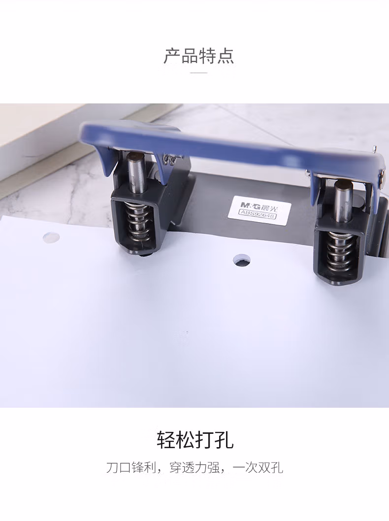 > 晨光(M&G)文具中号30页打孔器 便携式双孔打孔机 孔径7mm/孔距80mm(带标尺) 办公用品 蓝色单个装ABS92648