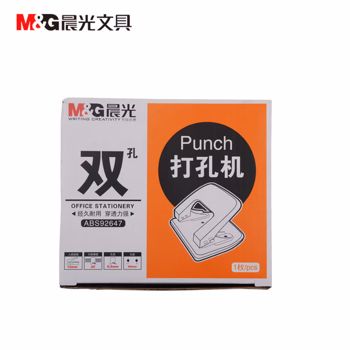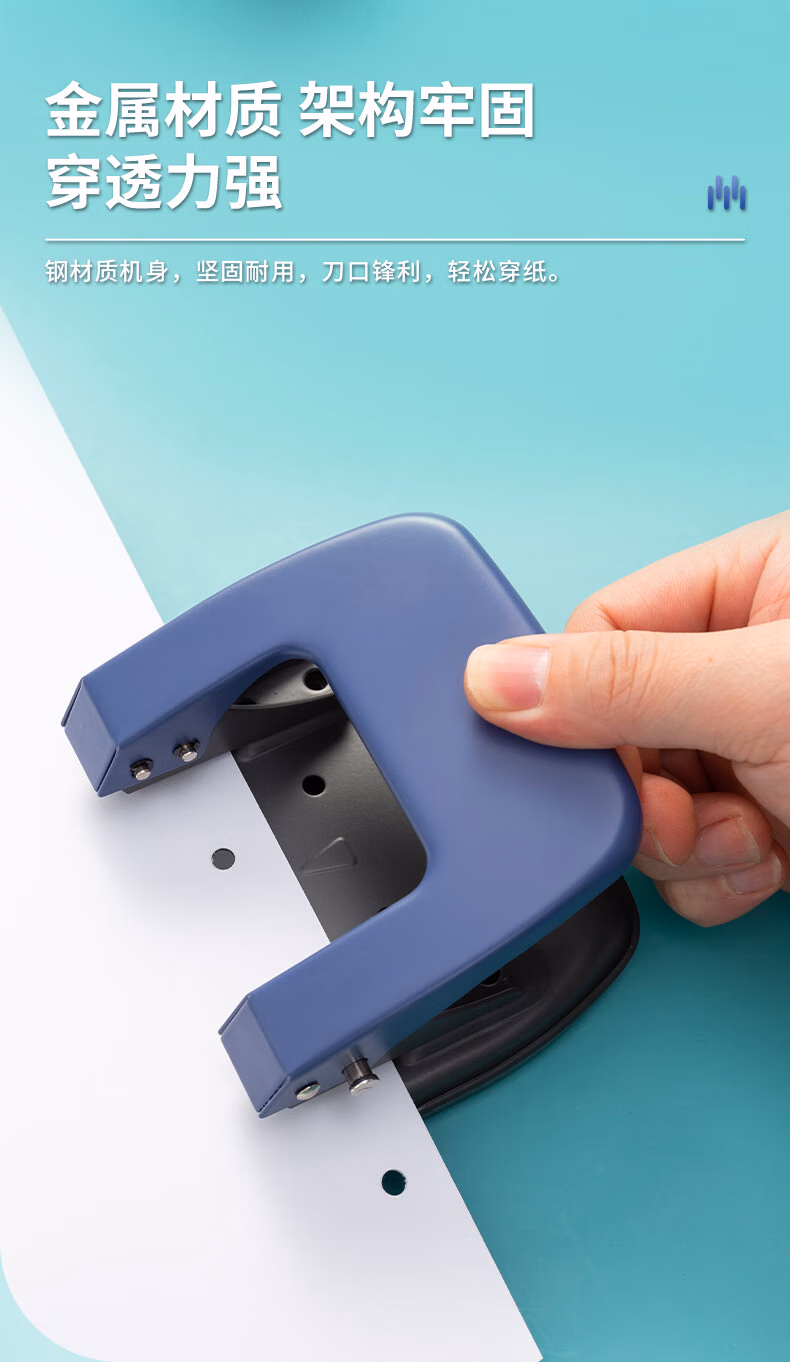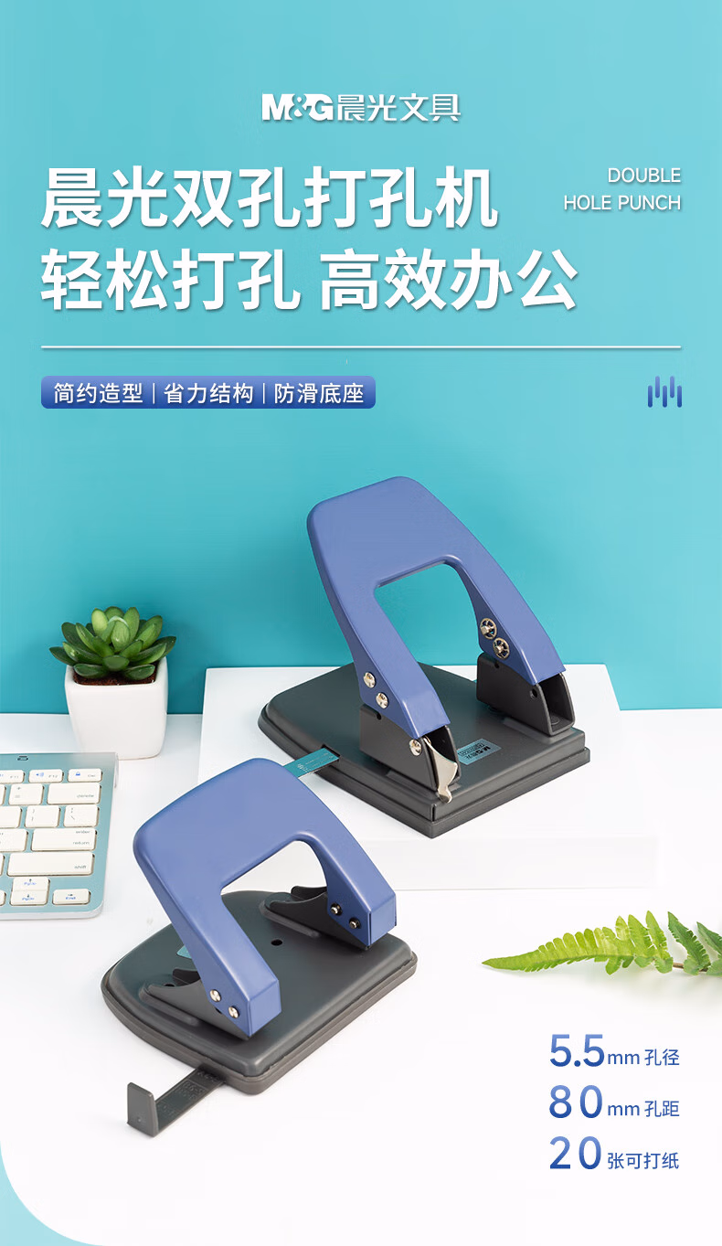 晨光(M&G)文具中号20页打孔器 便携式双孔打孔机 孔径5.5mm/孔距80mm(带标尺) 办公用品 蓝色单个装ABS92647