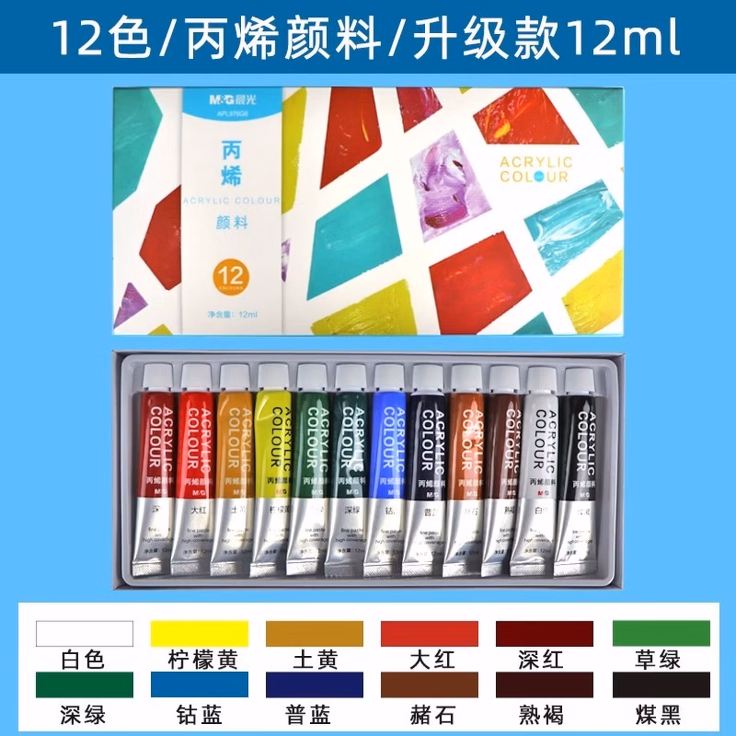 晨光(M&G)文具12ml/24色水粉颜料美术专用水粉画颜料学生写生绘画工具初学者儿童学生美术用品 12ml/24色-水粉颜料