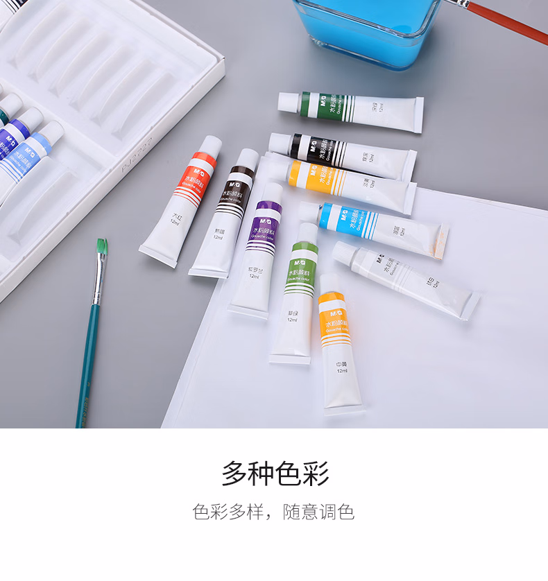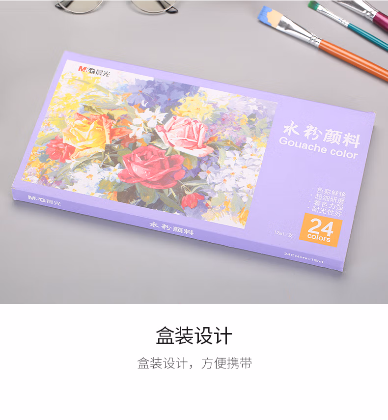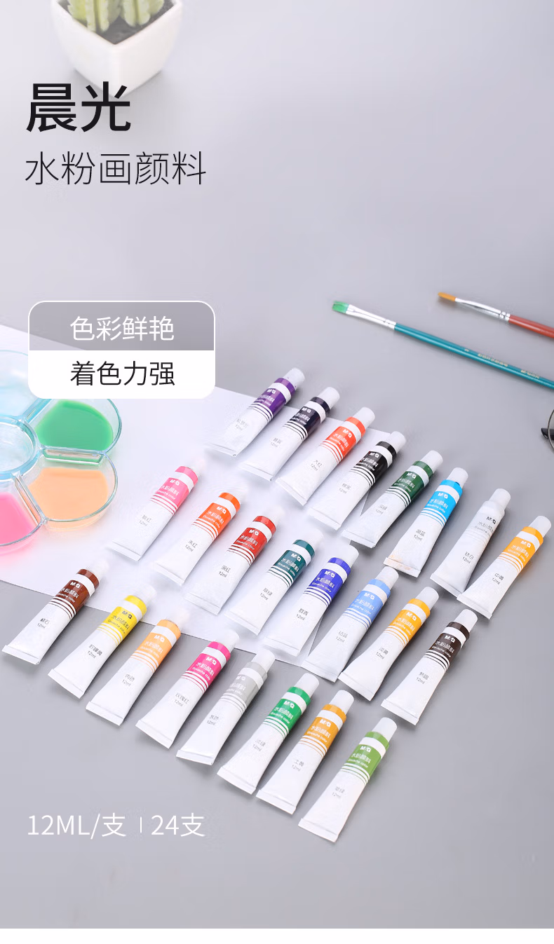 > 晨光(M&G)文具12ml/24色水粉颜料美术专用水粉画颜料学生写生绘画工具初学者儿童学生美术用品 12ml/24色-水粉颜料