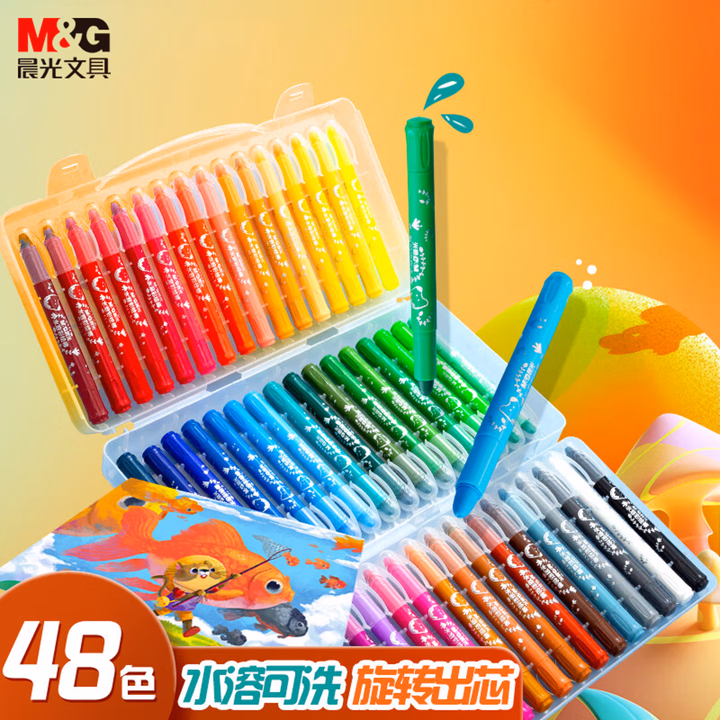 > 晨光(M&G)文具36色水溶性油画棒儿童可水洗不脏手彩绘棒大容量炫彩棒小狐希里蜡笔生日礼物