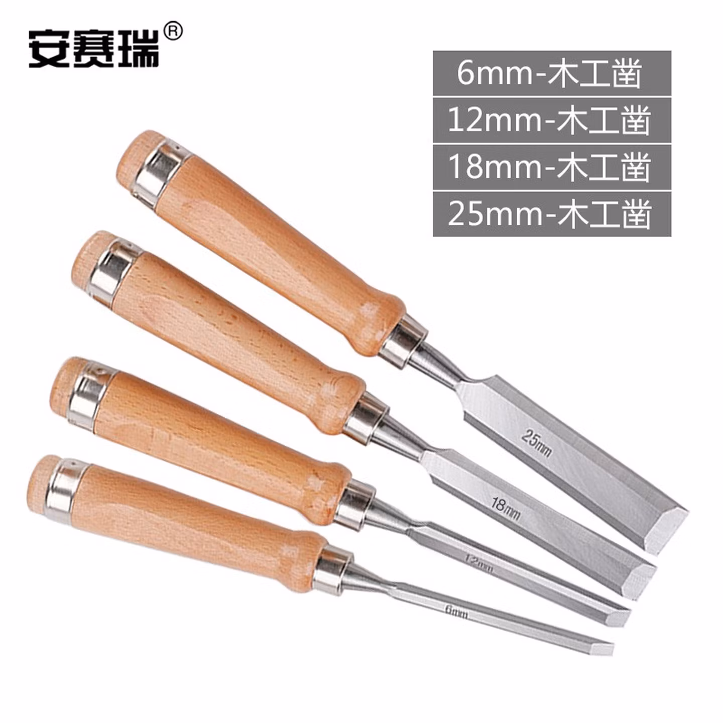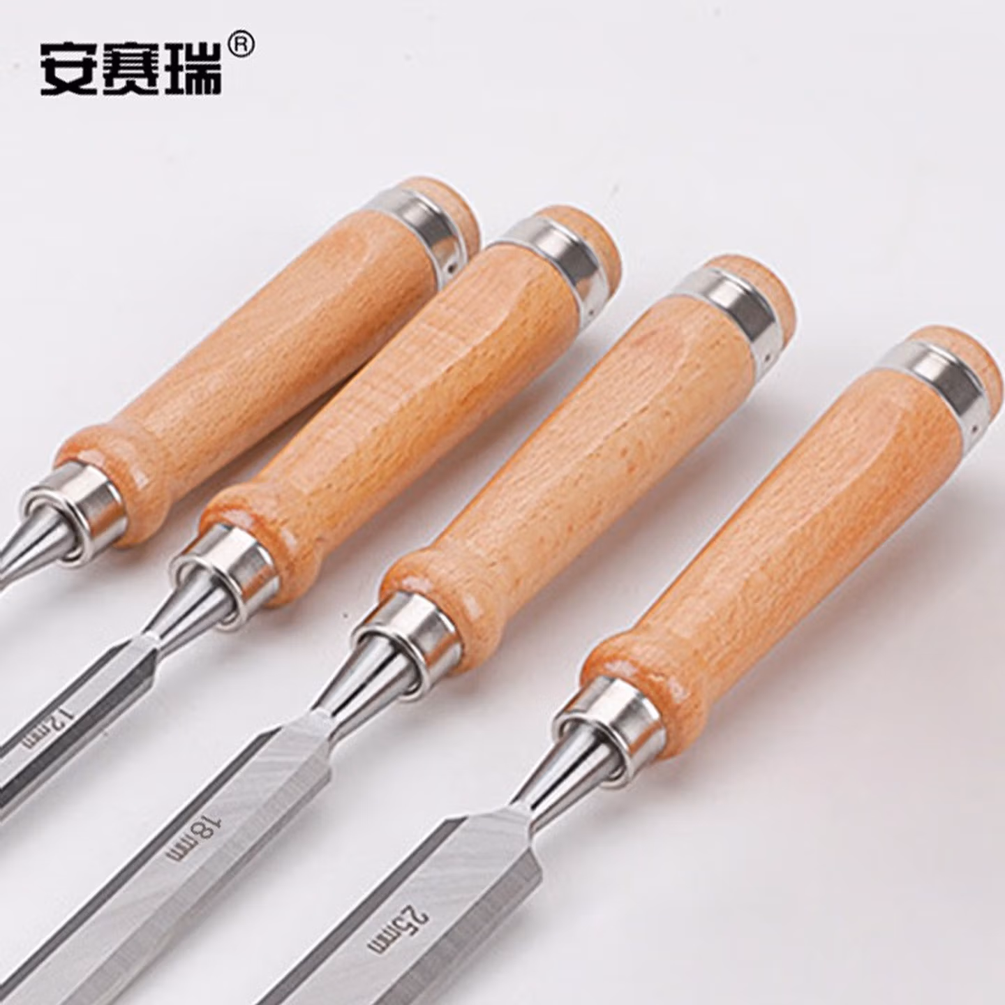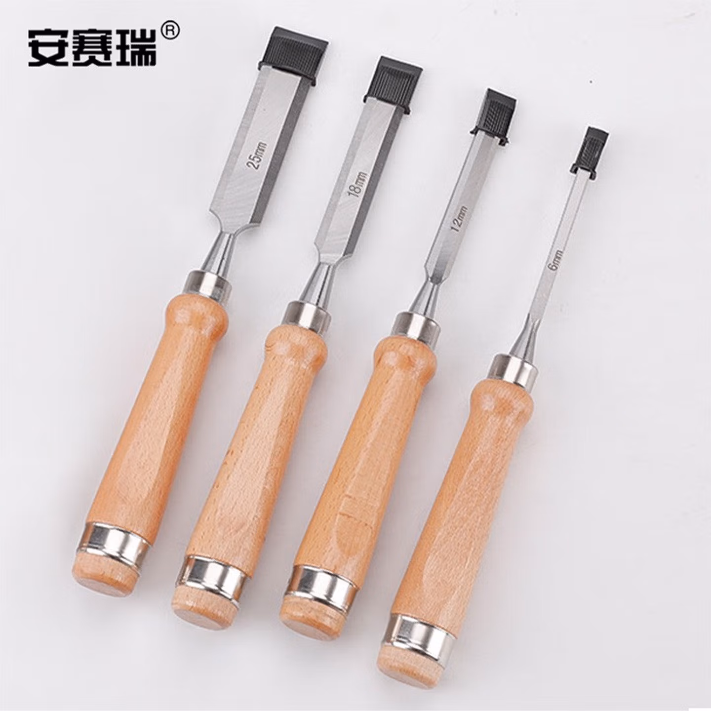 > 安赛瑞 木工凿雕刻刀 凿木凿子套装雕刻工具平口凿扁凿刀刻木工具 4件套 400134