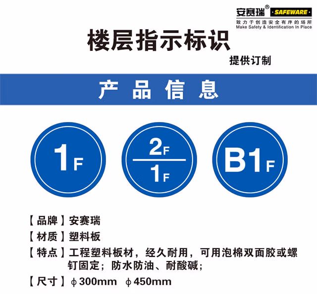 > 安赛瑞 楼层指示标识(10F/9F)φ300mm 楼层标示牌 39505