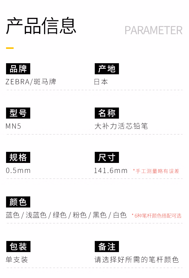 > 斑马牌 (ZEBRA)活动铅笔 0.5mm彩色杆活芯铅笔 学生用自动铅笔 MN5 粉色杆