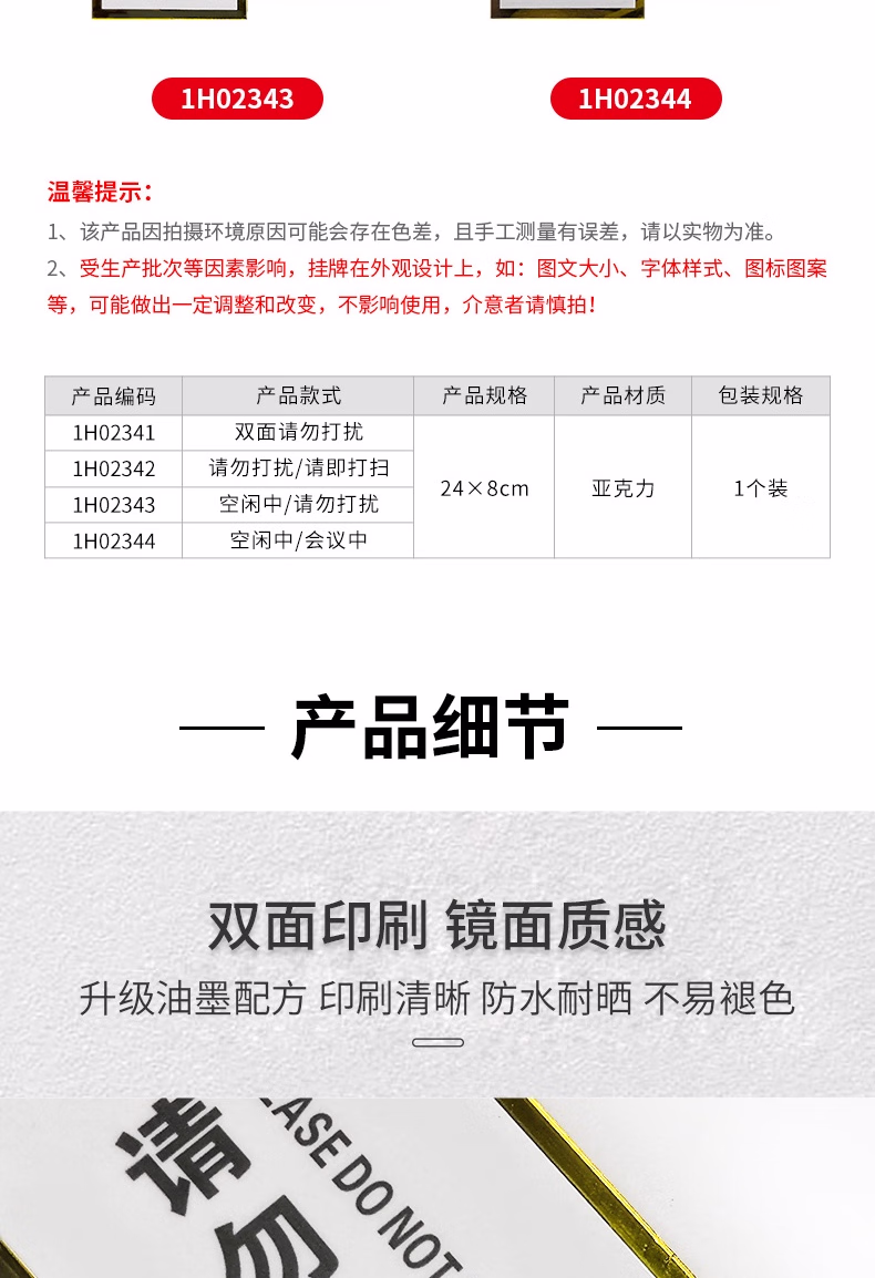 > 安赛瑞 亚克力挂牌 会议室门牌 会议中温馨提示牌 门把手挂牌 空闲中/会议中 1H02344