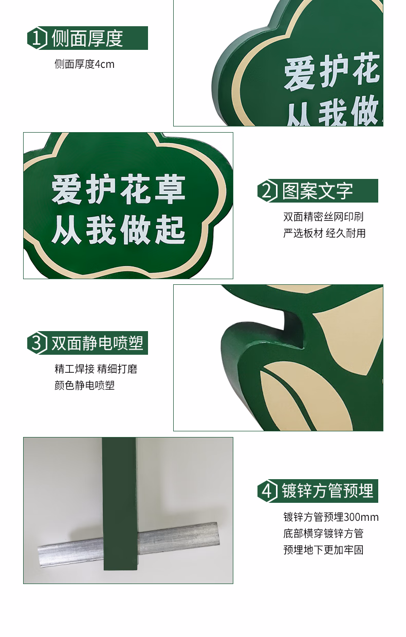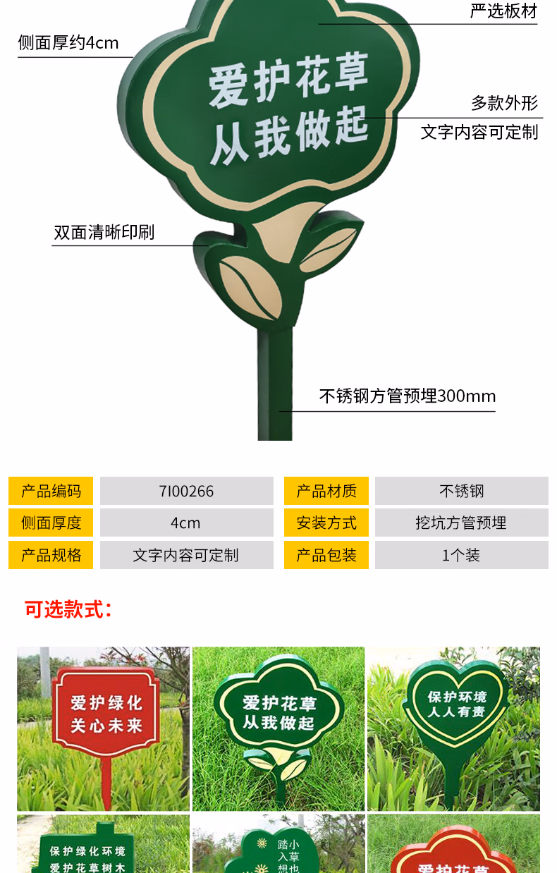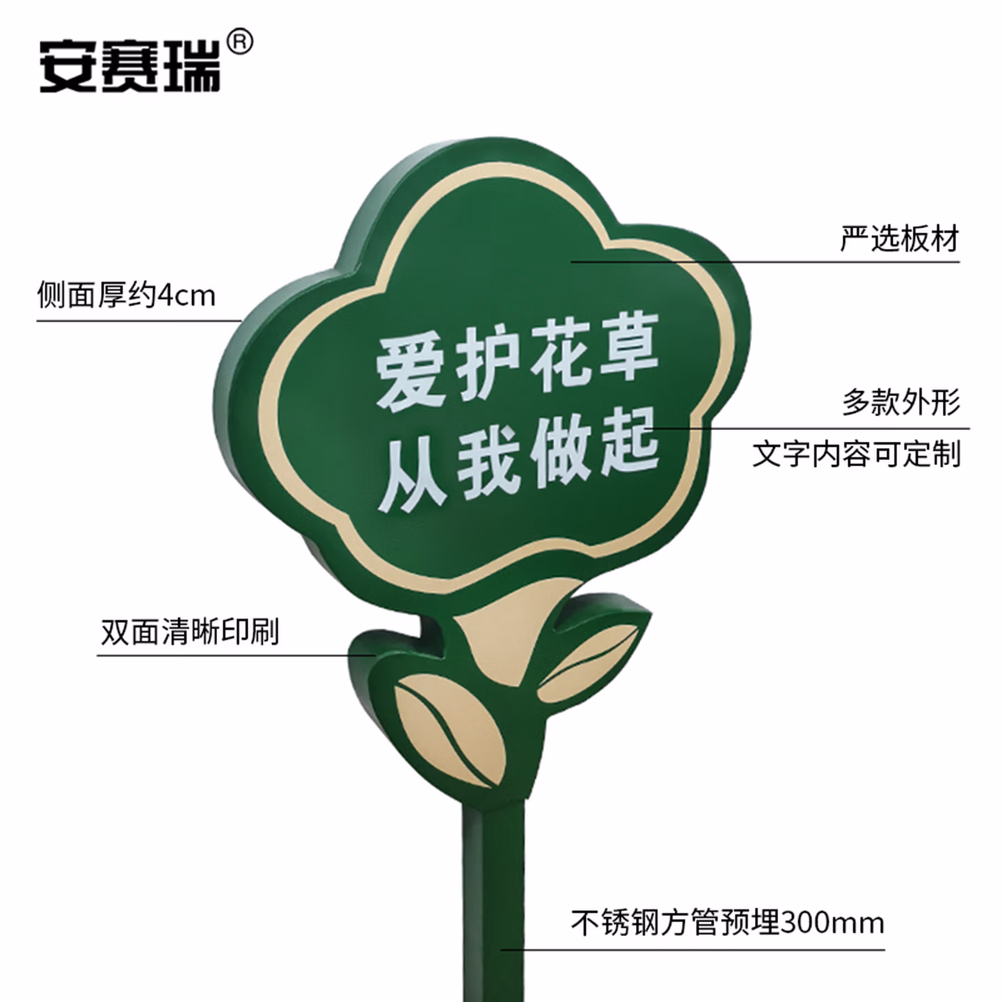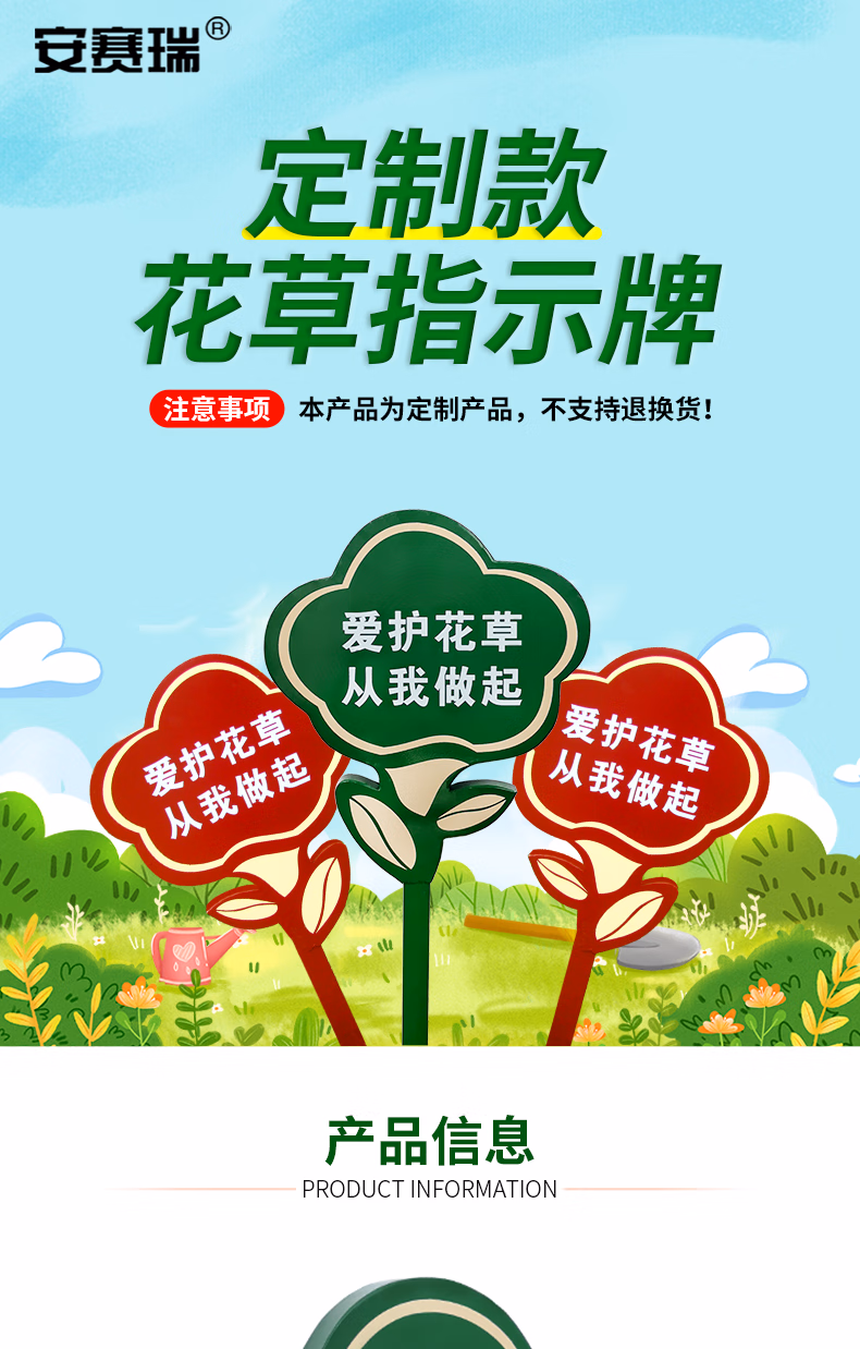 安赛瑞 花草牌 不锈钢双面警示标语 公园小区物业绿化牌 定制款 7I00266