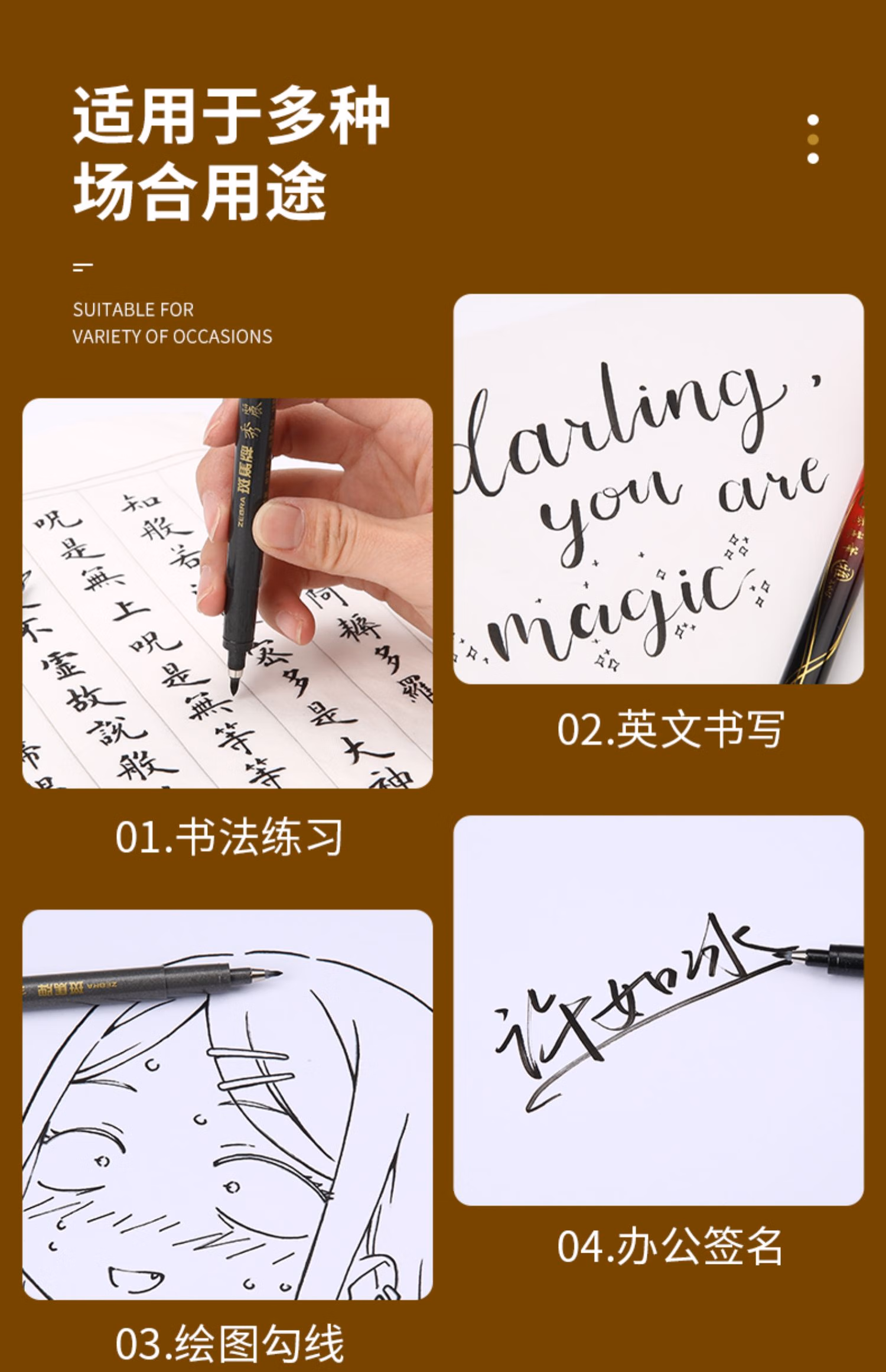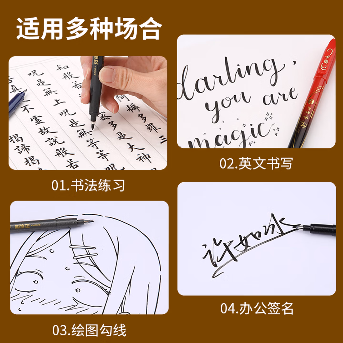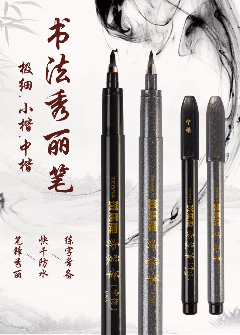 斑马(ZEBRA)秀丽笔ZEBRA软头牌小楷中楷细楷学生用黑色手绘软笔毛笔书法练字签字笔 【特惠装-练字推荐5支】小楷3支+中楷1支+极1
